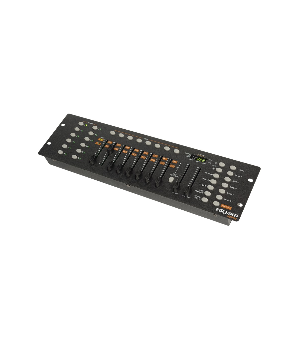 LIGHT 192 di Algam Lighting è una console DMX per il controllo remoto personalizzato dei vostri proiettori LED, teste mobili, laser o macchine del fumo. Con i suoi 192 canali per il controllo di un'installazione fino a 12 dispositivi, questa console DMX ti consente di realizzare tutte le tue idee di illuminazione attraverso i suoi 16 canali disponibili per apparecchio. Un alleato perfetto per le tue feste, il LIGHT 192 dispone anche di 30 banchi di 8 scene programmabili, per un totale di 240 scene memorizzate, 6 programmi di sequenza con velocità e tempo di dissolvenza regolabili e 8 fader per un controllo preciso delle tue preferenze di impostazione. Infine, questa console è disponibile in formato standard da 19" montabile su rack per una perfetta integrazione nella tua configurazione.