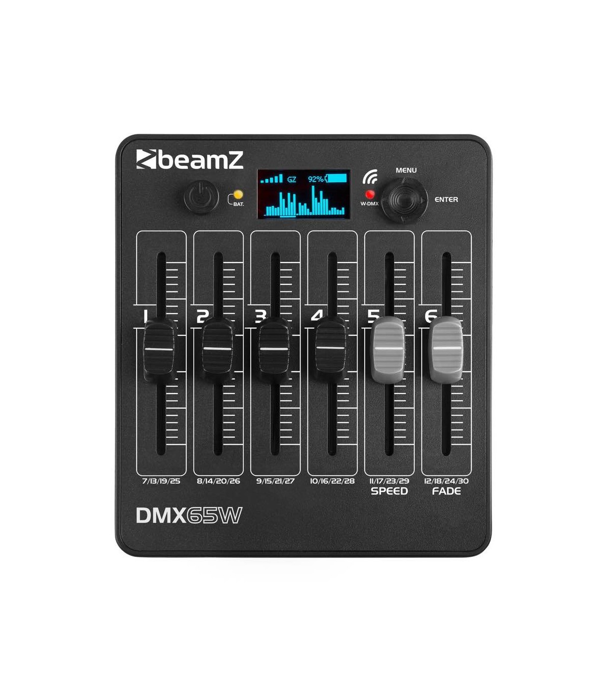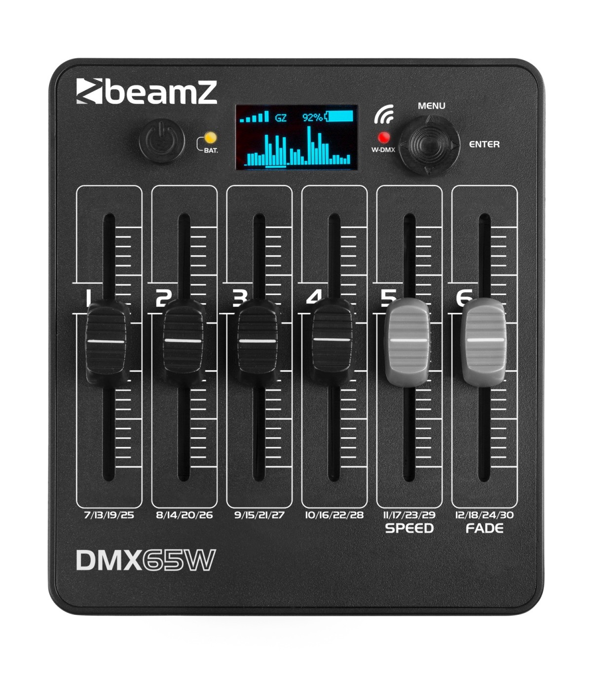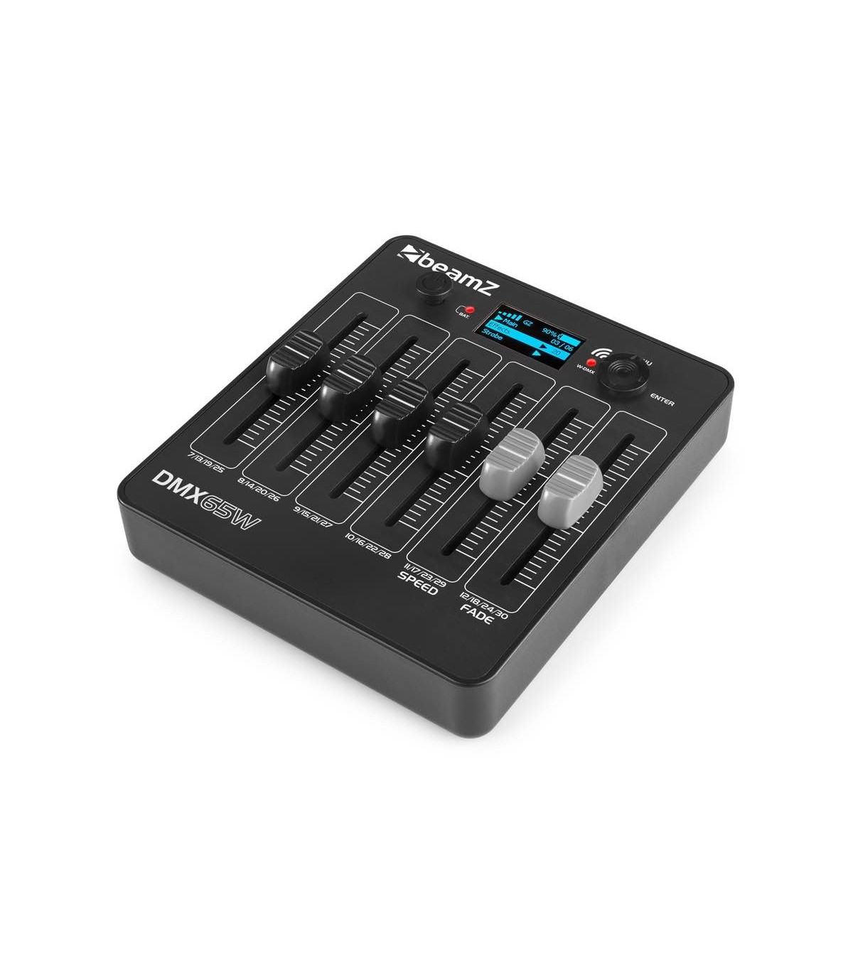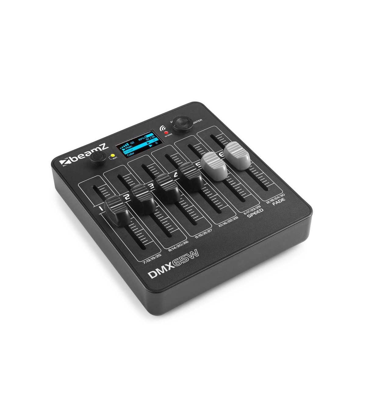 DMX65W è un mixer luci compatto, appositamente progettato per l'utilizzo complementare a, per esempio, Uplighters wireless BeamZ. È possibile sincronizzare in modalità wireless un numero illimitato di apparecchi W-DMX contemporaneamente e gestirli utilizzando la semplice navigazione sul display digitale OLED. Il controller DMX65W con batteria ricaricabile può essere utilizzato come dispositivo portatile, oppure essere montato a parete per l'installazione permanente.