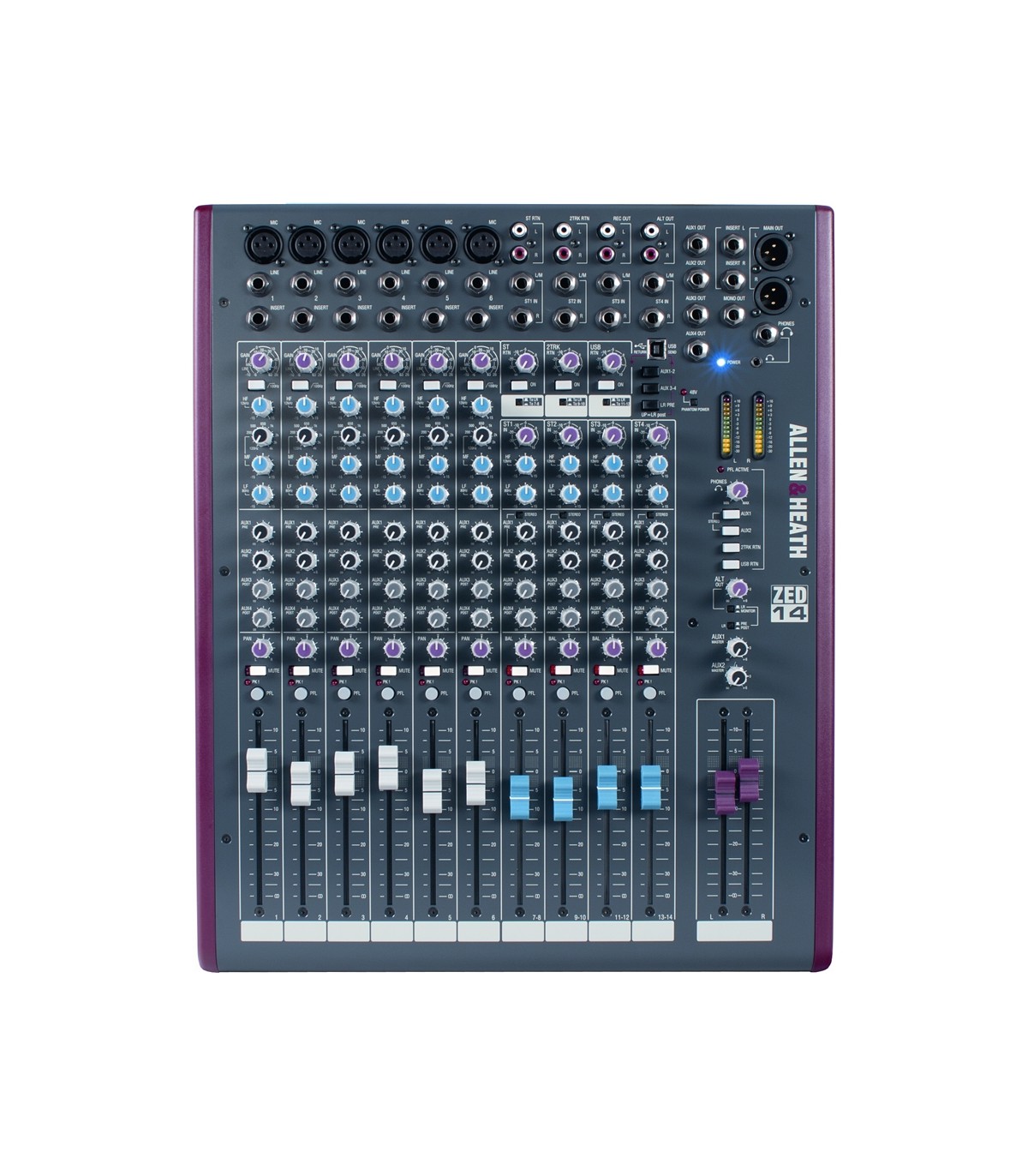 È un mixer per tutti, dai semplici amatori fino ai professionisti, che apprezzino il grande suono, la robustissima costruzione ed la grande quantità di funzioni. Perfetto per la performance live e per la registrazione nel vostro studio in casa. La varietà di funzioni è incredibile, per un mixer di questa fascia, ha 15 sorgenti indipendenti verso il mix, 10 uscite indipendenti, 4 mandate aux, 2 mandate e ritorni per PC o Mac attraverso l’USB, canali stereo doppi, e funzioni di monitoring avanzate. ZED-14 è così ricco e completo, anche dal punto di vista del suono che penserete debba costare, molto, molto di più; Ed è solo il primo di una famiglia!