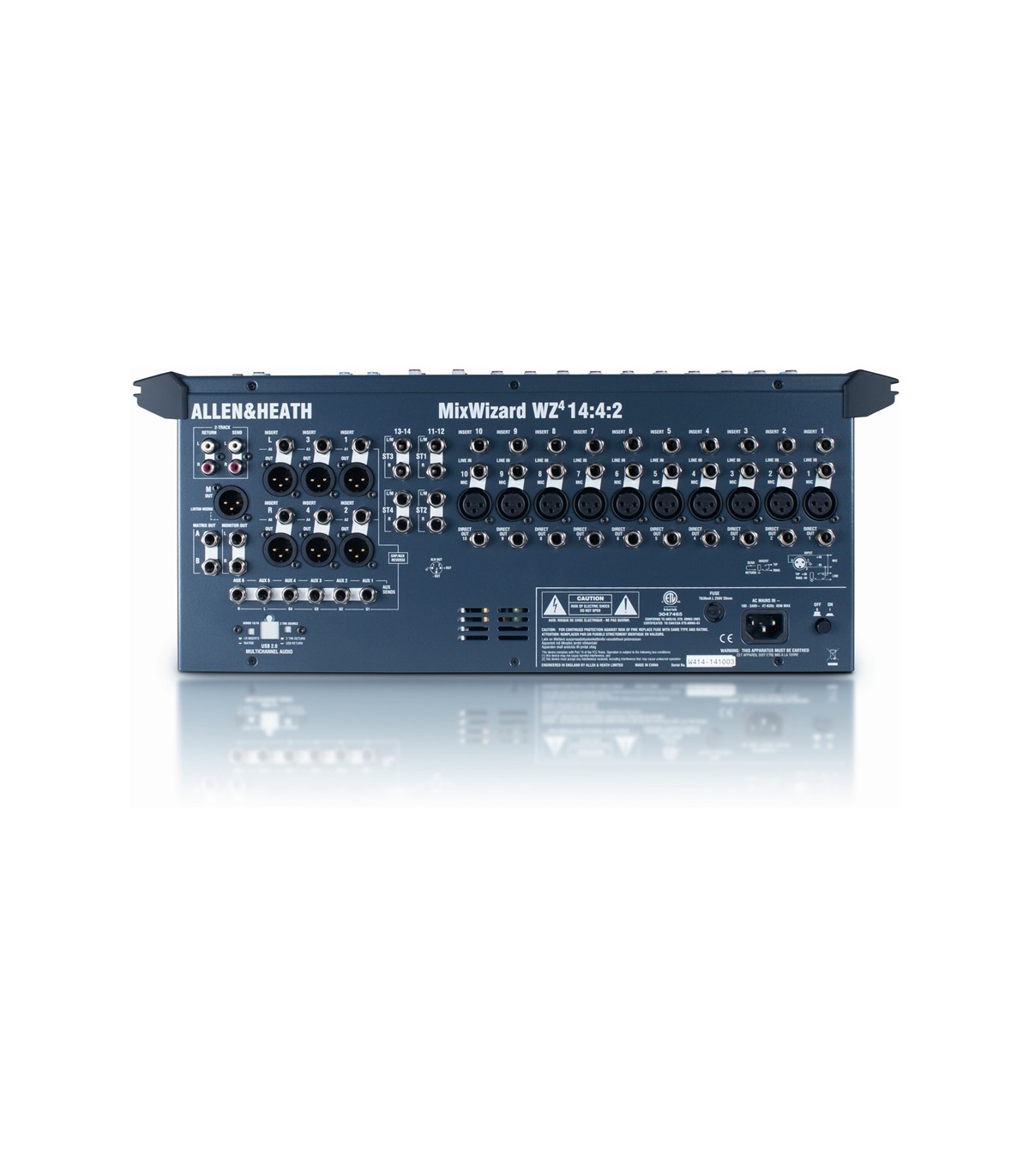 Il WZ4 14:4:2 presenta 4 bande di EQ di cui 2 parametriche per le frequenze medie, fader da 100mm di ottima qualità, 6 mandate aux, 12 segmenti per la barra dei meter e l’esclusivo connettore QCC per utilizzare il prodotto in modalità desktop oppure montato su rack o flightcase.