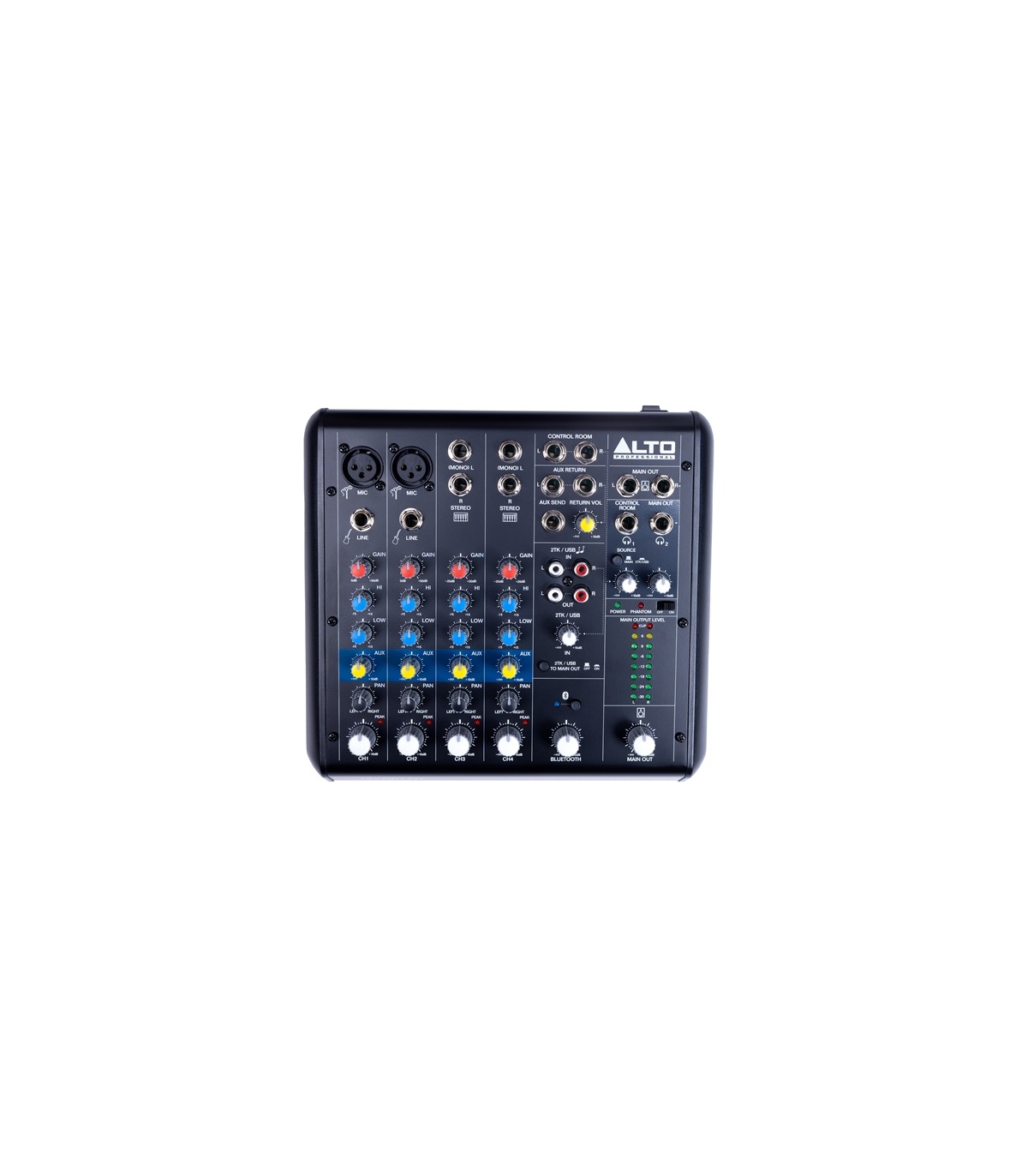 Mixer analogico a 5 canali: 2 mono (Mic/Instrument), 2 stereo line e 1 canale stereo Bluetooth. Gain, equalizzatore 2 bande (basse e alte), Pan e mandata (Aux) su ogni canale. Ingressi line bilanciati, Phantom attivabile sugli ingressi microfonici. Ingresso e uscita stereo 2-TRACK su connettori RCA con routing indirizzabile verso Main Mix o uscita cuffia. Porta USB audio class compliant che aggiunge al tuo computer PC, Mac e altri device un ingresso e un'uscita stereo. Led meter ad 8 segmenti.