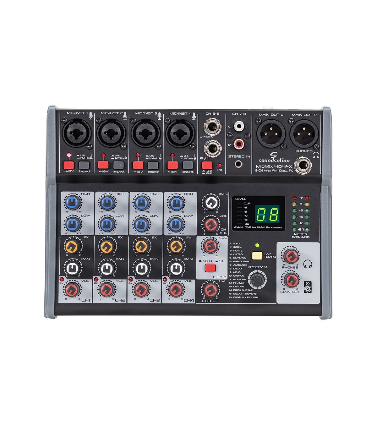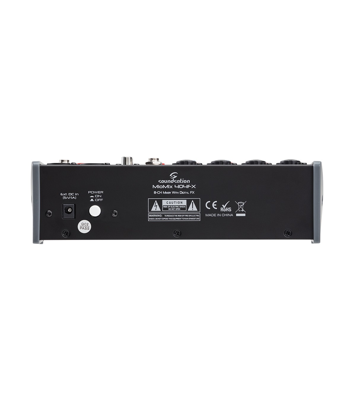 MioMix 404FX è un mixer a 8 canali con multi-effetto digitale ideale per tutte le piccole applicazioni di home recording, esecuzioni dal vivo e Podcasting che richiedono qualità professionale e massima portabilità. I 4 ingressi Mic sono dotati di preamplificatore a basso rumore con possibilità di adattarsi alle principali sorgenti sonore come microfoni a condensatore – grazie all’alimentazione Phantom +48V, microfoni dinamici, ingressi di linea e ad alta impedenza (chitarre, bassi, ecc.). Gli ingressi stereo di linea permettono di collegare tastiere, lettori CD, console DJ, tablet, smart-phones, ecc. Il multi effetto digitale a 24-bit/48kHz con 16 tra i puoi usati preset (Reverberi Hall/Room/Plate, Delay, Eco, Chorus, ecc.) migliora le vostre performance e permette di regolare fino a due parametri per ciascun effetto. Uno strumento indispensabile e affidabile per tutte le piccole applicazioni audio.