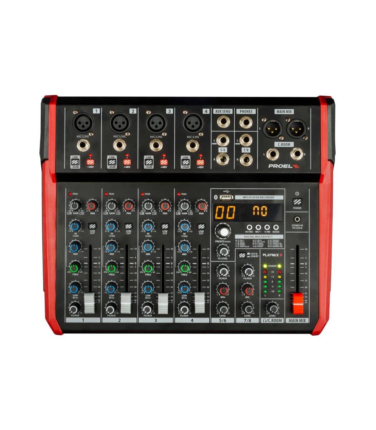 Accuratamente progettati e ingegnerizzati in Italia da PROEL, i mixer PLAYMIX sono alloggiati in robuste scocche che garantiscono una lunga durata per un uso a prova di palcoscenico, e offrono in un formato ultracompatto le prestazioni di console professionali, con un suono pulito e preciso per una vasta gamma di applicazioni.MONO INPUT CHANNEL