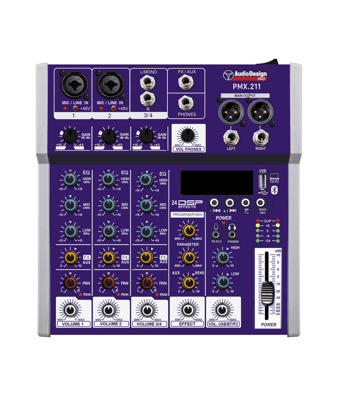 Mixer professionale 2 canali mono + 1 stereo - USB/BT/PC - 24 effetti con DSP