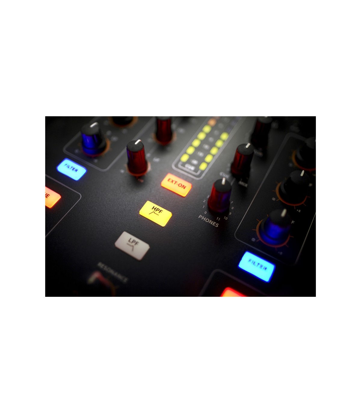 Il cuore del mixer è il famoso sistema analogico Voltage Control Filter (VCF) che offre filtri Low-Pass e High-Pass, scansione di frequenza e controllo di risonanza 'mild to wild’. C'è anche un FX Loop per connettersi a unità effetti esterne.