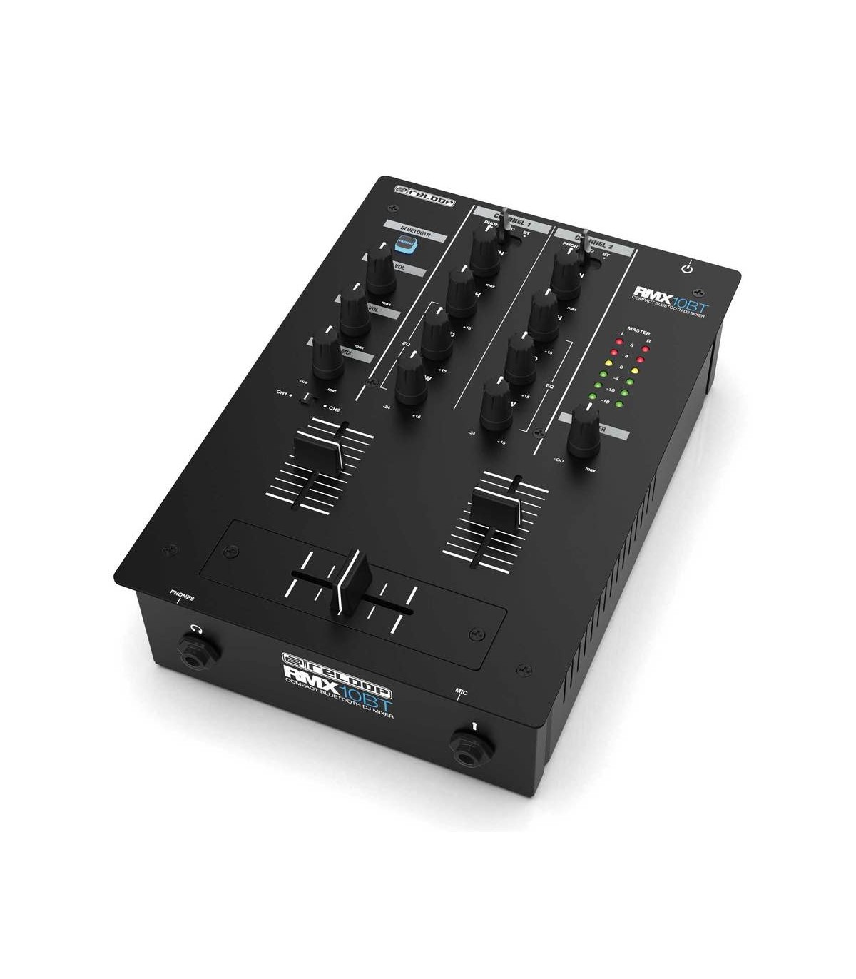 Mixer per DJ a 2+1 canali con Bluetooth integrato e possibilità di inviare l’audio proveniente dal dispositivo Bluetooth ad entrambi i canali del mixer, EQ a 3 bande, canale MIC con volume indipendente, 2 ingressi Line, 2 Phono, 1 Mic con jack TRS da 6,3 MM, uscite Master (RCA), REC (RCA) e cuffie (jack da 6,3 mm), dimensioni 180 x 260 x 80 mm, peso 1.72 kg.