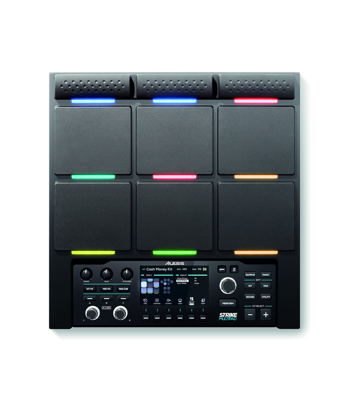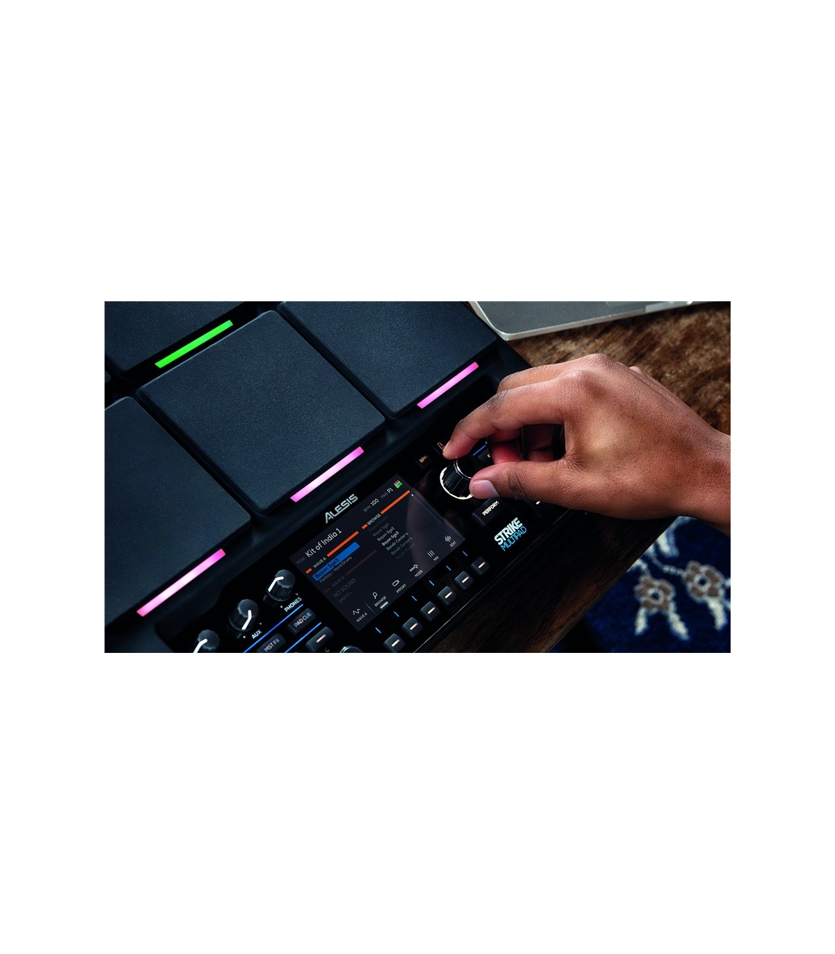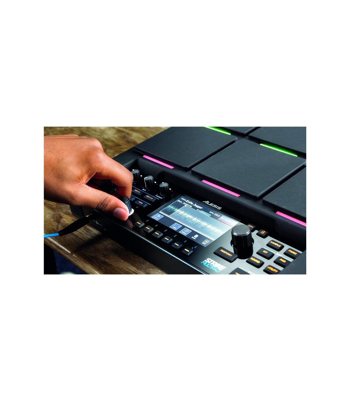 Dotato di 9 pad retroilluminati RGB ad alta sensibilità, uno schermo LCD a colori da 4,3", 7000 samples e loop (6 GB su 32 GB di memoria integrata) e scheda audio 2 In/2 Out integrata, lo Strike Multipad soddisfa le esigenze del batterista, del percussionista e del live performer che ha necessità di campionare, editare e looppare in modo intuitivo e immediato i propri samples o loop.