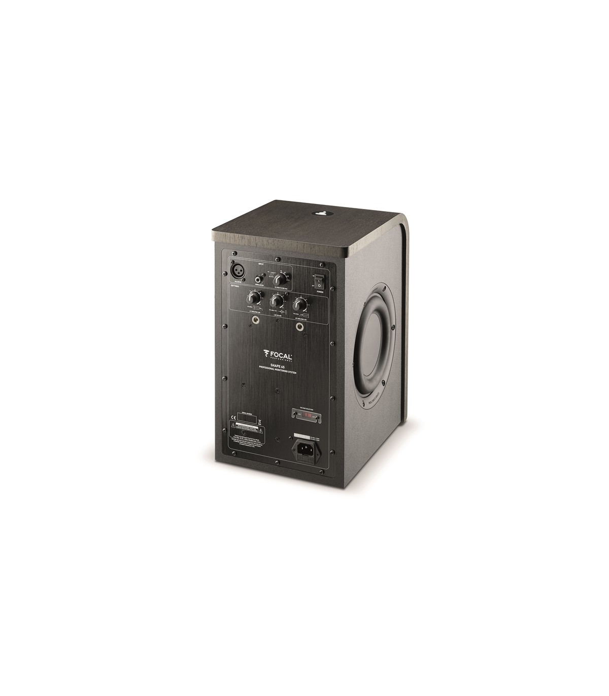 Focal Shape 65, monitor nearfield attivo; 80+25 watt classe ab; woofer: da 6,5" flax cone; tweeter: da 1" alluminio-magnesio 'M' shaped; due radiatori passivi laterali da 6,5"; risposta in frequenza (+/-3 db): 40 Hz - 35 kHz; max spl peak@1m (musical signal): 109 db; impedenza ingressi: 10 kΩ controlli: filtro passa-alti, bassi, medi, alti; power switch; funzione automatica di standby; costruzione: mdf 12 mm; finiture: vinile, legno di noce evernice nera; connettori: xlr bilanciato ed rca sbilanciato con sensitivity compensation; staffa per montaggio a parete ed a soffitto (viti ed accessori non forniti); dimensioni: 218 x 285 x 355 mm; peso: 8,5 kg.