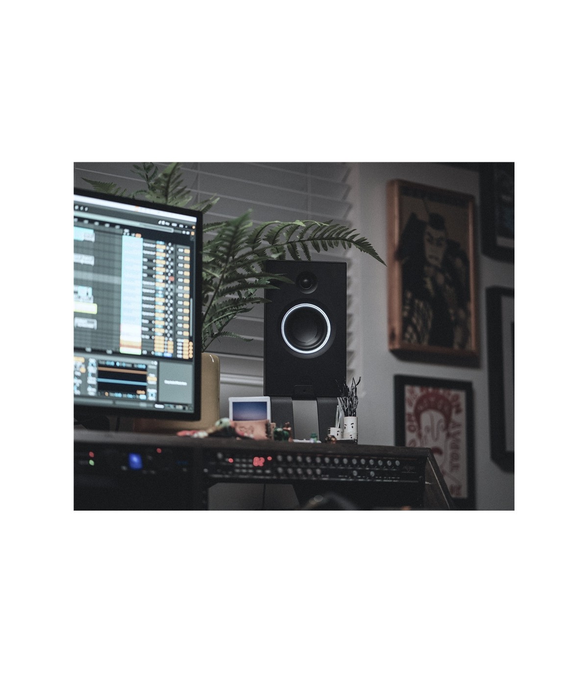 La portabilità è data dalle dimensioni ridotte e da un peso di soli 2,5 kg per monitor, da una durata della batteria di oltre 20 ore e da un bass reflex posteriore progettato in modo tale che funzioni anche da comoda maniglia. A protezione del woofer e del tweeter è fornita una robusta griglia in acciaio nera magnetica, facilmente rimovibile all’occorrenza.