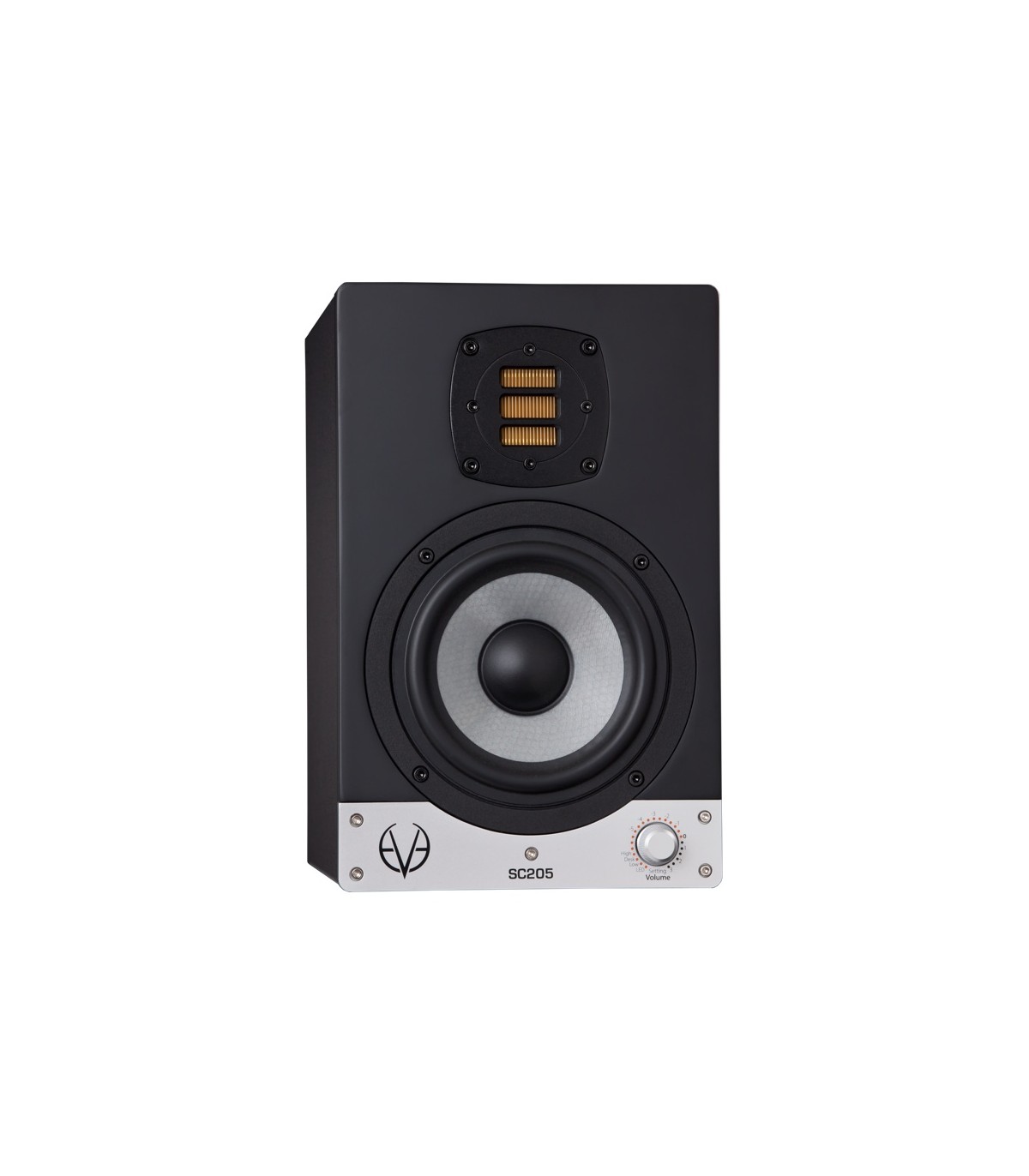 Monitor da studio professionale, a due vie, attivo, dotato di woofer schermato da 5" in fibra di vetro, tweeter a nastro con trasduttore Air Motion da 1", pot posteriore, filtri basati su DSP per la regolazione della risposta in frequenza, push knob per il controllo del volume e della risposta acustica, convertitori A/D Burr-Brown di altissima qualità, ingresso analogico XLR bilanciato e RCA sbilanciato, risposta in frequenza 53Hz-21kHz, amplificatori distinti per bassi e acuti con potenza di 2x50W (picco) ciascuno, SPL 101 dB, pulsante on/off, inserti filettati nel pannello posteriore per il fissaggio a parete, su asta microfonica o stativo per speaker. Dimensioni 174 x 275 x 233 mm, peso 5 kg. N.B. il prezzo indicato è per singolo monitor. Garanzia di 5 anni mediante registrazione sul sito Eve Audio.