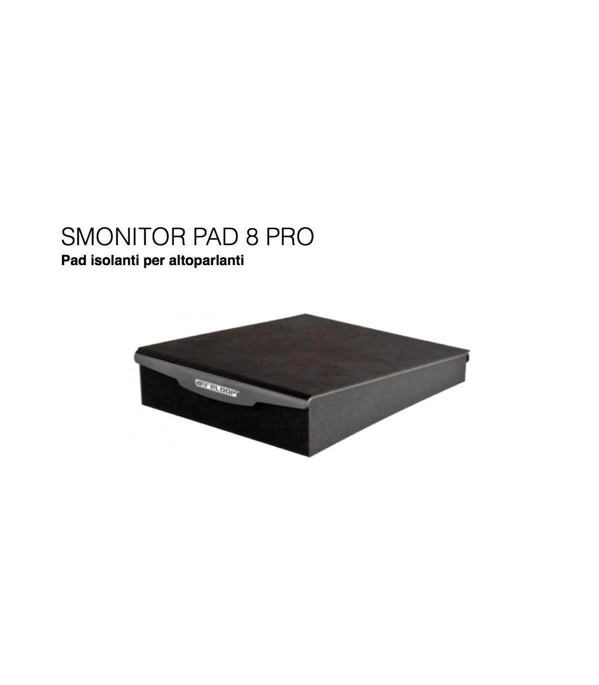 Pannello isolante sotto speaker professionale per monitor da 8”, realizzato con apposito polimero isolante e piano di appoggio rinforzato in metallo ed inclinato di 5°, dimensioni mm 263x330.