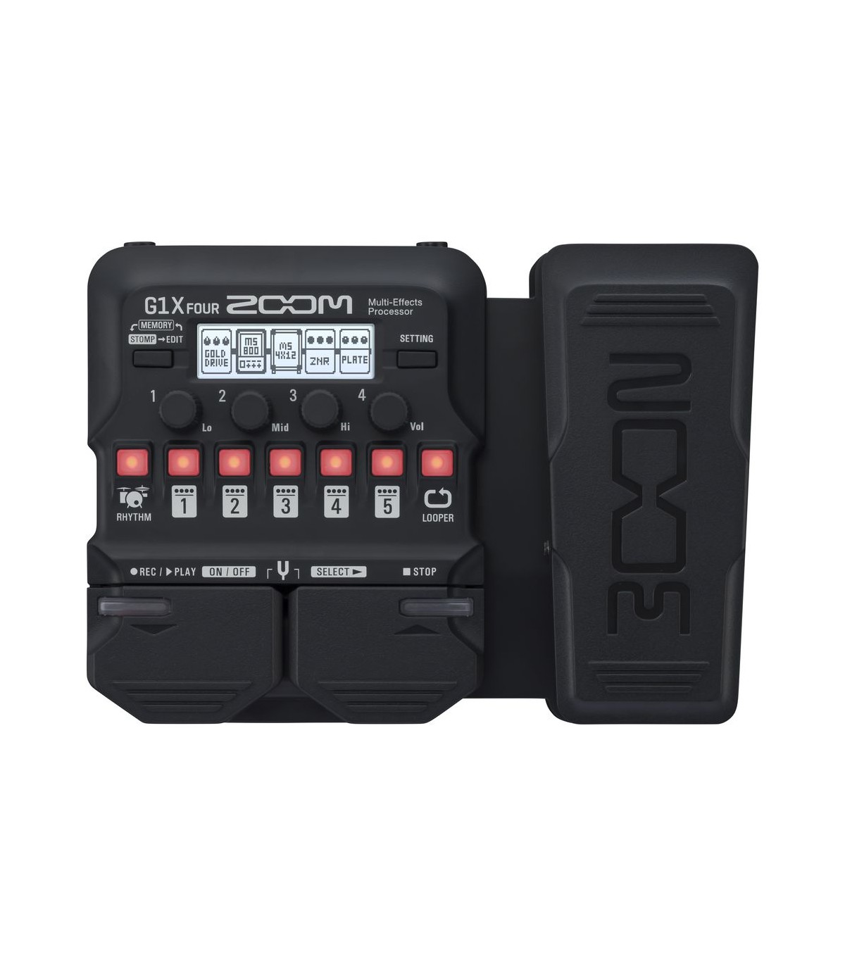 Lo Zoom G1X Four è dotato di oltre 70 effetti tradizionali e boutique. Aggiungi dimensione al tuo suono con delay e riverberi. Dai lucentezza ai tuoi suoni con un chorus, un flanger o un phaser. Oppure cerca qualcosa di più esoterico come un ring modulator, un delay pitch-shifting o una simulazione di sitar - è tutto lì dentro. Ci sono anche 13 modelli di amplificatori classici e di cabinet a bordo, che coprono dalla tranquillità dei clean all'anarchia degli high-gain. Si possono usare fino a cinque effetti contemporaneamente, concatenati insieme in qualsiasi ordine. E quando hai composto tutto, puoi salvare fino a 50 patch utente. I metronomi sono ottimi per mantenere il tempo, ma non sono molto stimolanti. Ecco perché il G1X Four include 68 pattern di batteria incorporati. Questi ritmi straordinari ti danno un sacco di cose da fare, vantando più tempi - 4/4, 3/4 ed altro. Grazie al looper dello Zoom G1X Four, puoi stabilire una progressione di accordi, creare un loop, quindi riprodurlo. E' possibile registrare e creare loop fino a 30 secondi di audio in qualità CD, che sono più che sufficienti per creare arrangiamenti dinamici a più parti. E non pensare che l'utilità del looper di G1X Four sia limitata alle sessioni di esercitazione: è anche un fantastico strumento per le tue esibizioni.