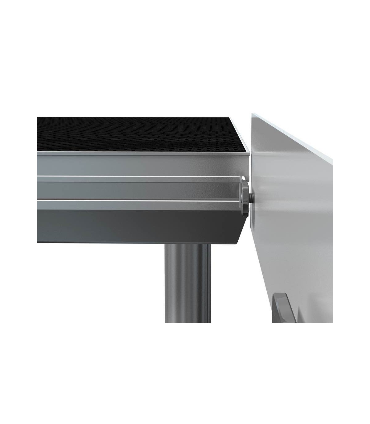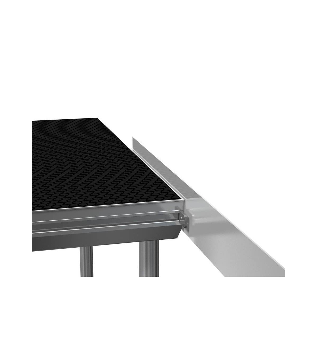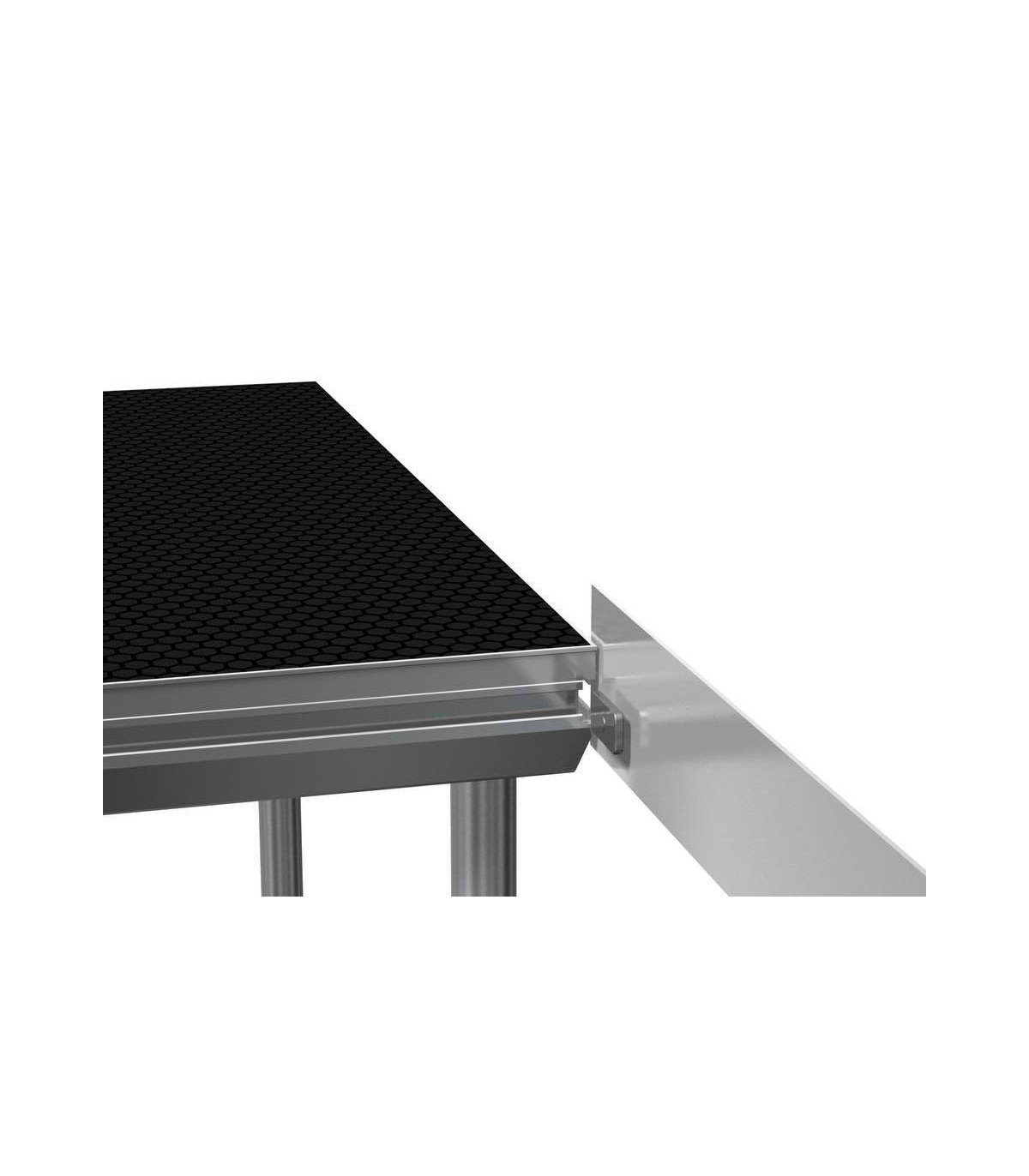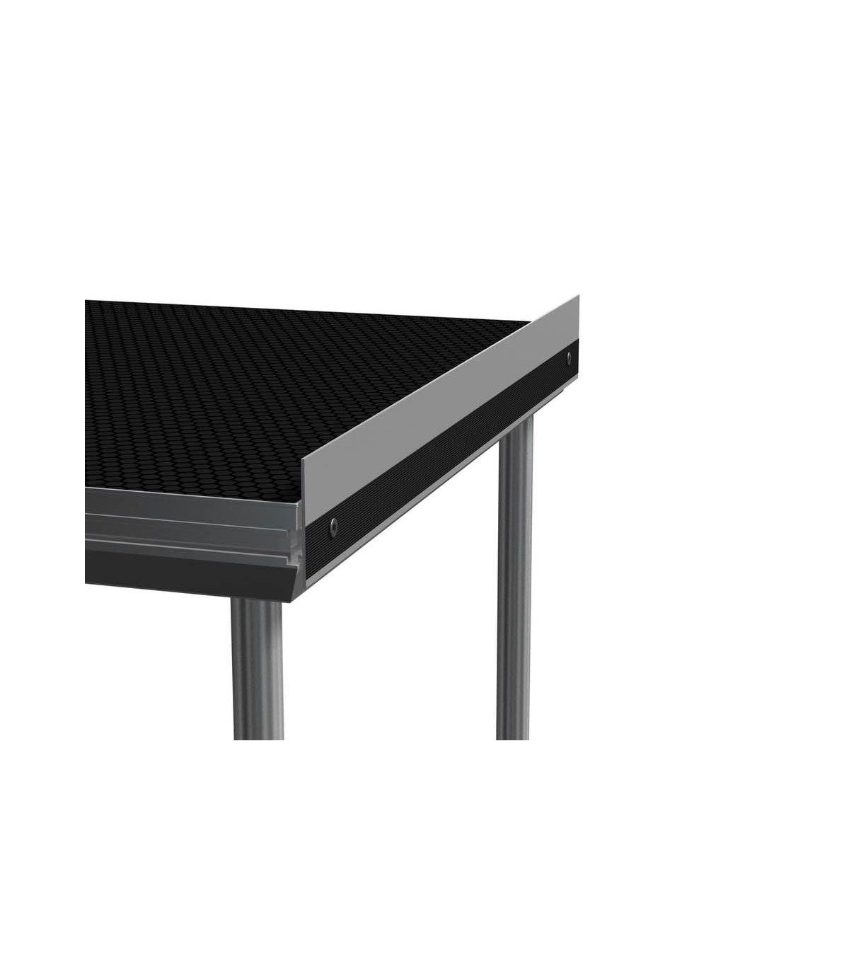 Profilo battiscopa in alluminio per il palco. Con la possibilità di attaccare i profili battiscopa al ponte di scena. Prefinito con chiusura a strappo e punti di connessione. Facilitata creazione di parapetti nel ponte di scena