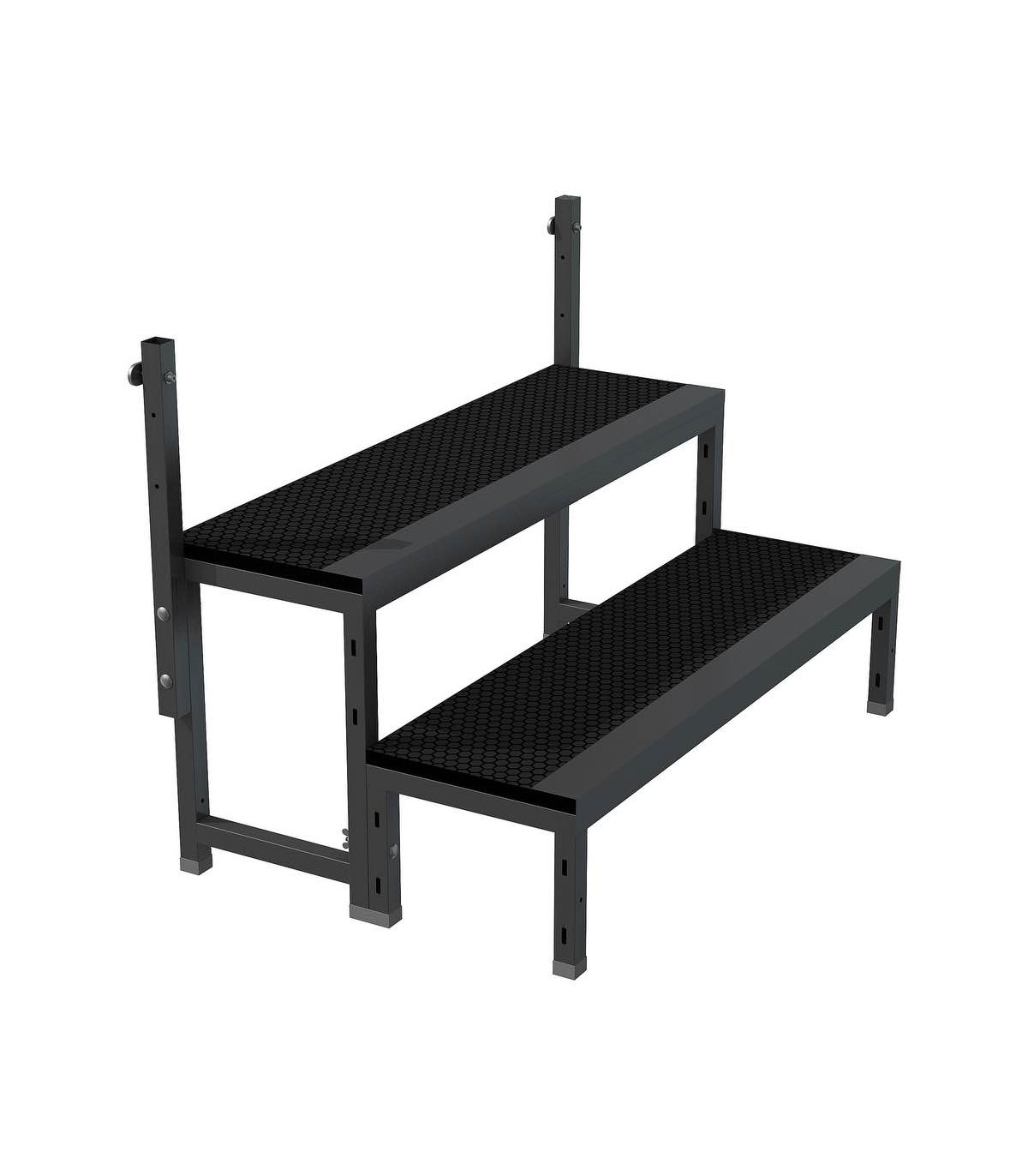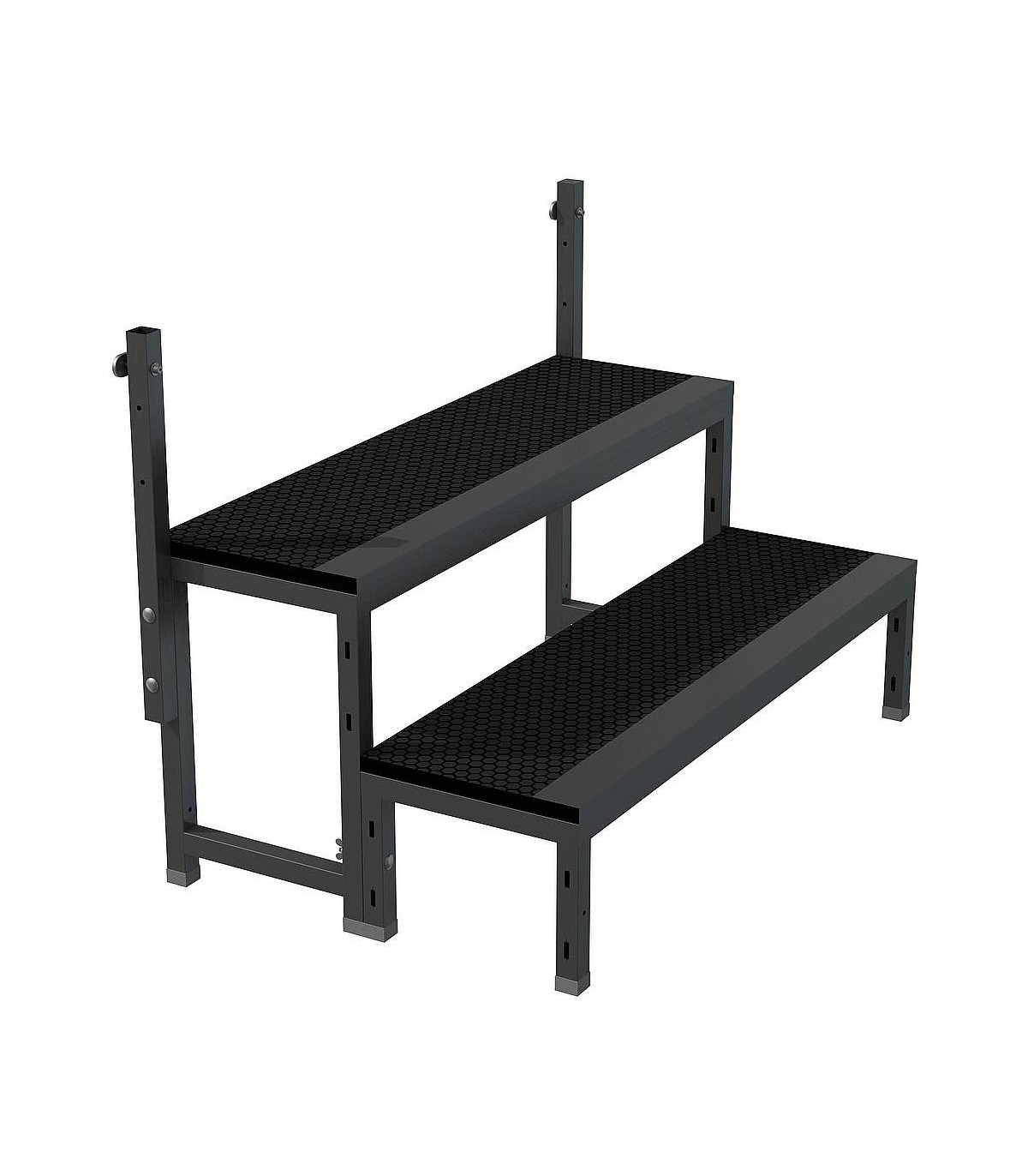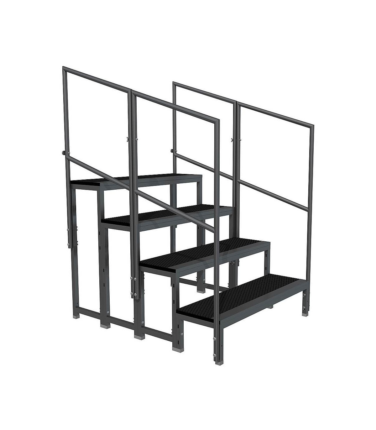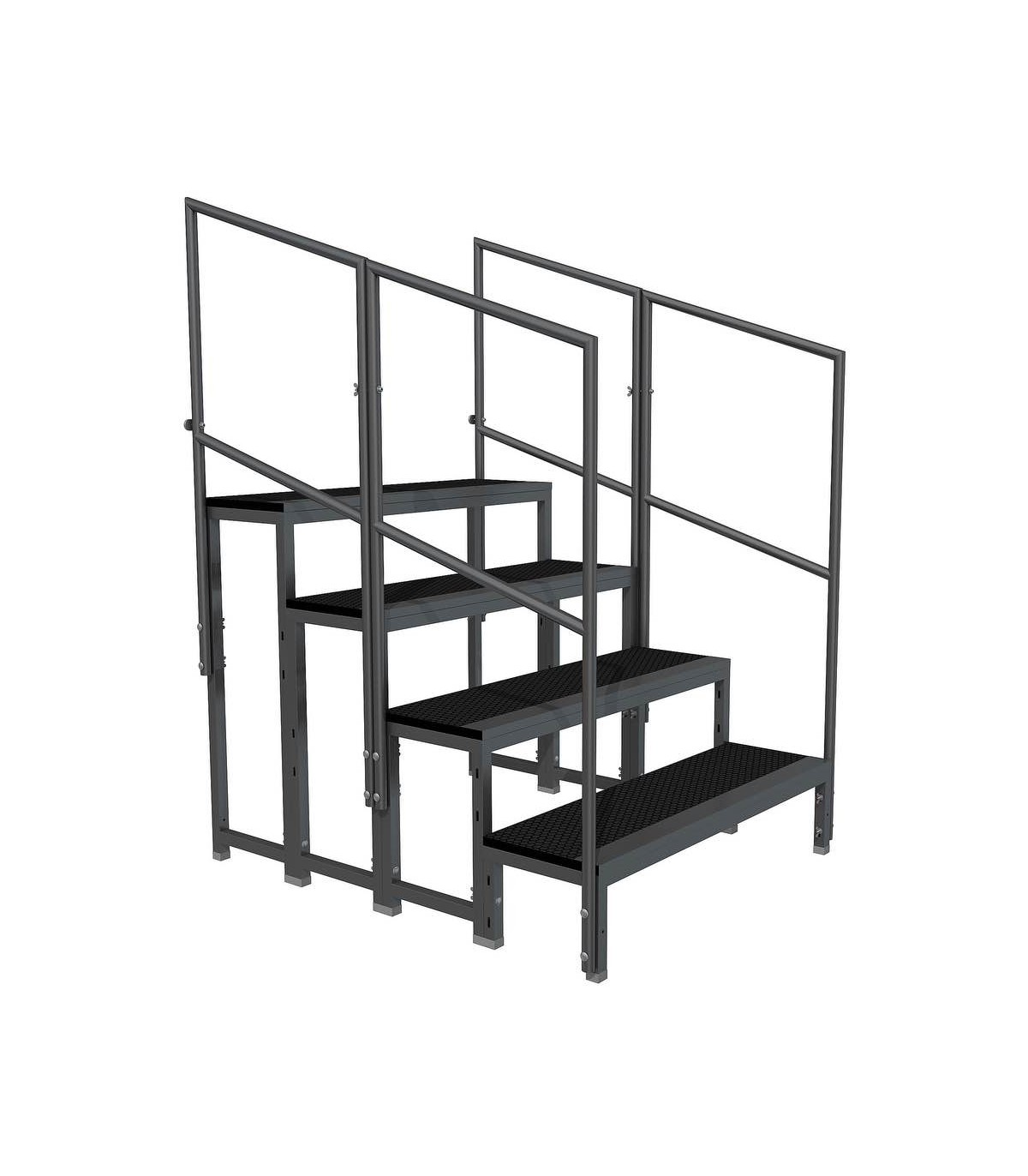 Scala modulare con gradini tutti della stessa altezza, disponibile in quattro diverse altezze. Le scale hanno piedini regolabili che consentono di posizionare e livellare le scale su superfici irregolari. Le scale sono saldate da profili in acciaio, i gradini sono in multistrato e hanno il nostro speciale rivestimento antiscivolo "Hexa" per garantire la massima aderenza, rendendola adatta sia per interni che per esterni.