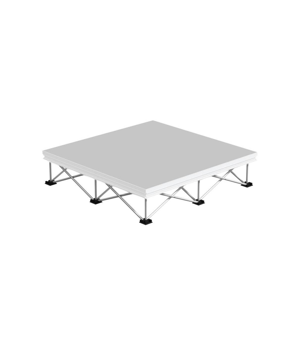 Il sistema di risalita Spider Deck750 è dotato di un esclusivo sistema di piegatura grazie al quale può essere facilmente riposto e trasportato. Le unità Leg Riser sono disponibili in 2 colori, alluminio e nero, e in 3 diverse altezze, in modo da poter modificare l'altezza del palco quando necessario.
