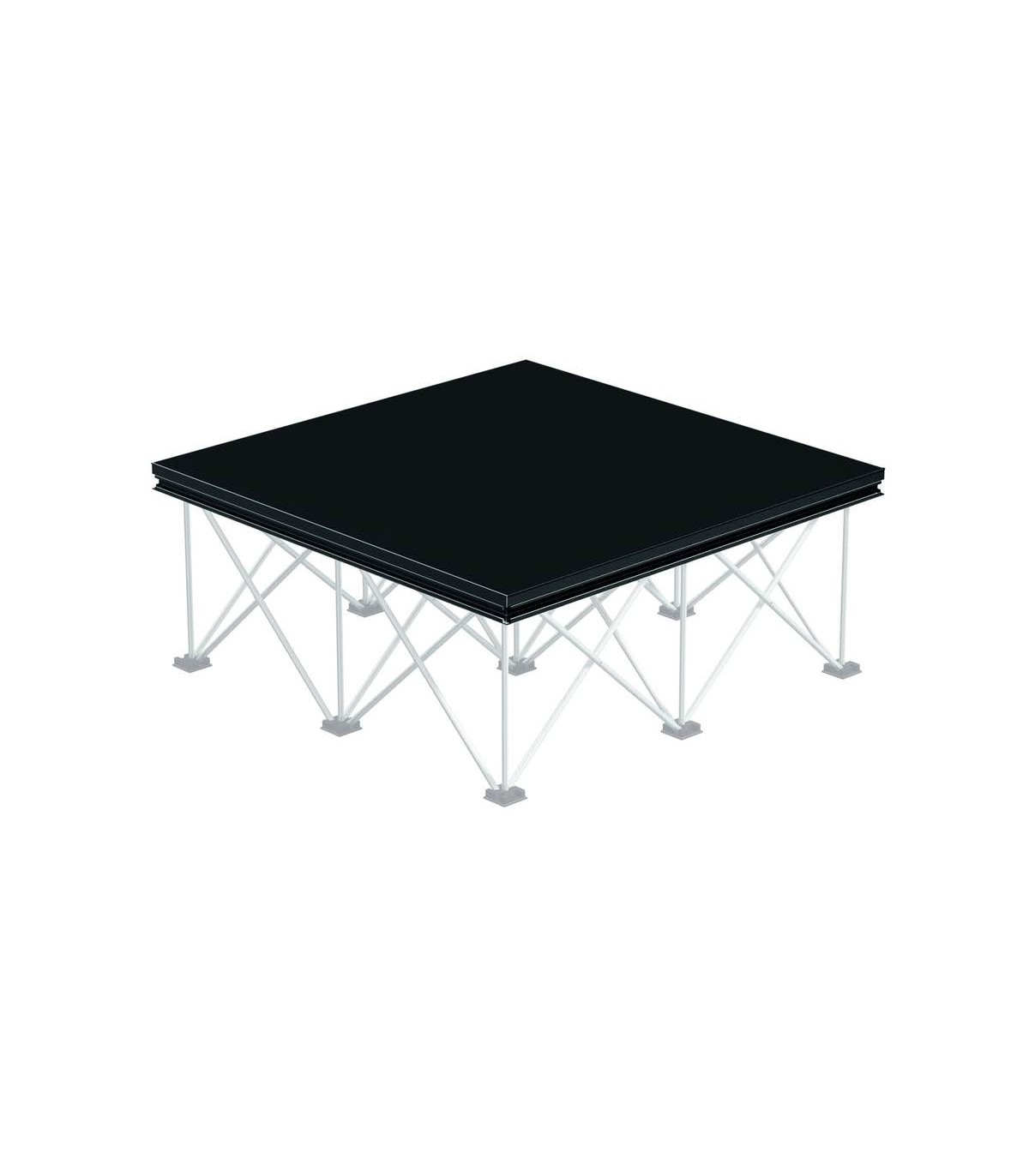 Pedane da palco modulari per allestimenti portatili, facili da montare: ideali per università, scuole, podi di conferenze, passerelle, hotel e altro ancora. La base in multistrato nero ha uno speciale rivestimento antiscivolo "Hexa" per garantire la massima aderenza, rendendola adatta sia per interni che per esterni.