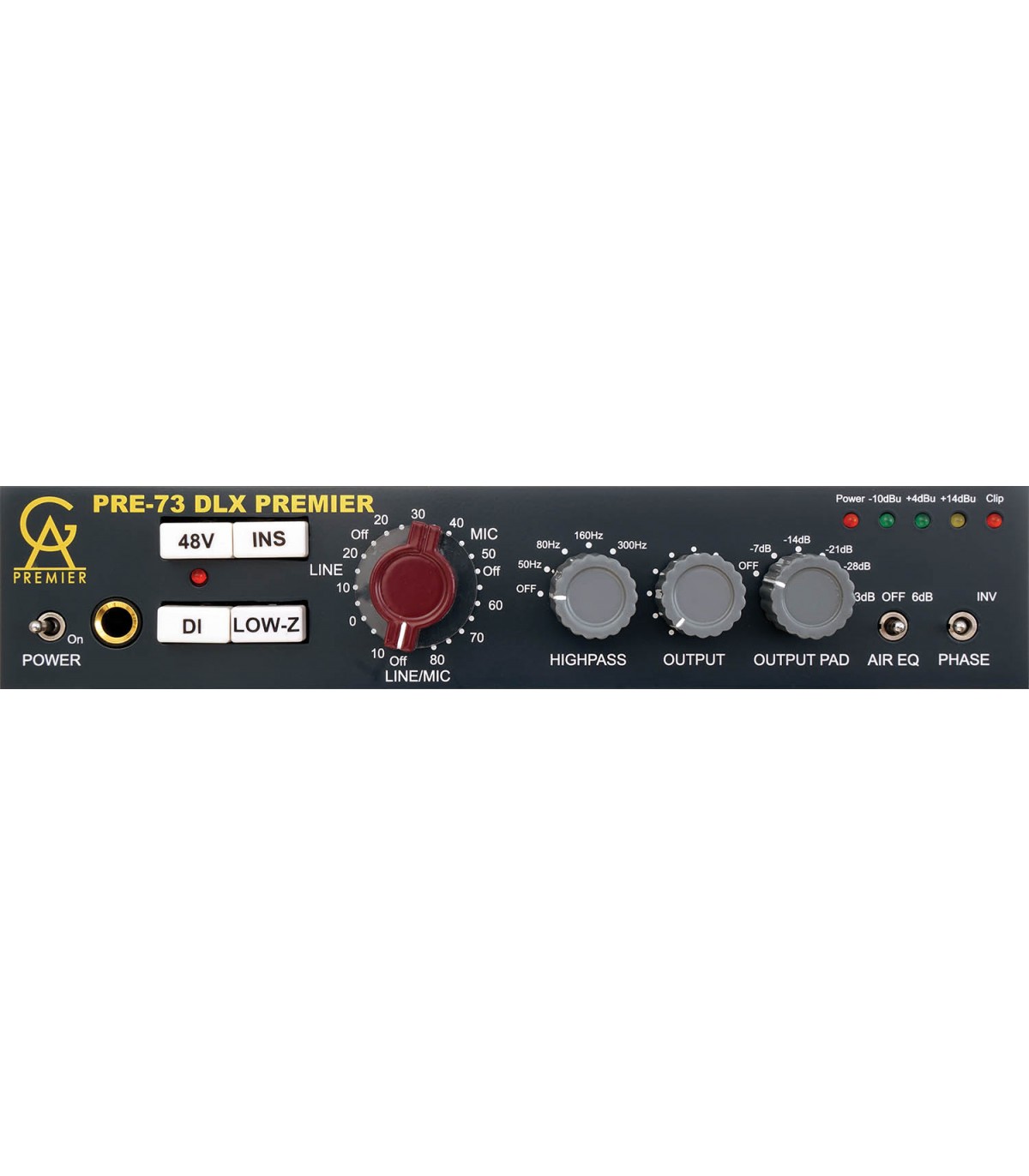 Come PRE-73 PREMIER ma con trasformatori Carnhill e diversi altri componenti di ancora maggiore qualità, high pass filter selezionabile tra 50Hz, 80Hz, 160Hz e 300Hz e output pad selezionabile tra -7 dB, -14 dB, -21 dB e -28 dB.