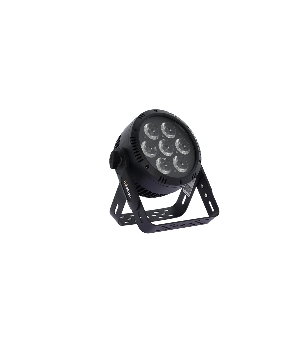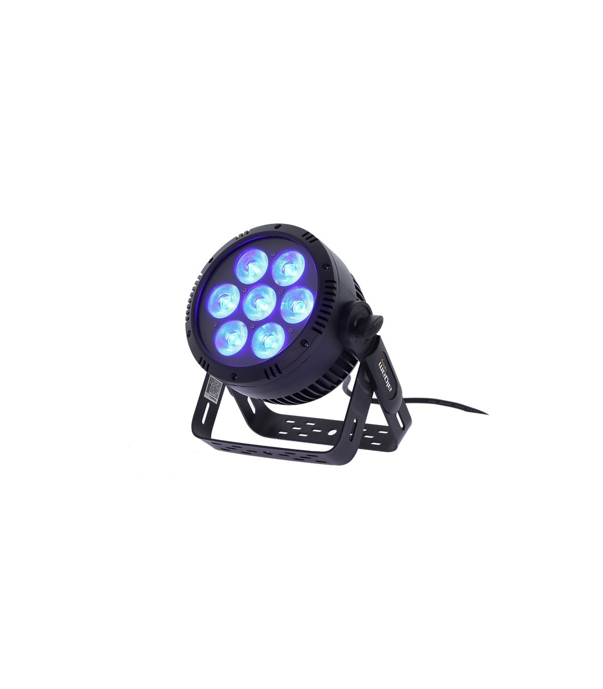 Progettato appositamente per illuminare scene esterne nelle condizioni più difficili, IP PAR 725 QUAD di Algam Lighting mette a disposizione 7 potenti LED RGBW 4 in 1 da 25 Watt con apertura a 20°, associati a connettori IP65 in grado di resistere alle intemperie e alle infiltrazioni di polvere. La sua doppia staffa consente un'installazione semplice e veloce, sia a terra che su strutture.