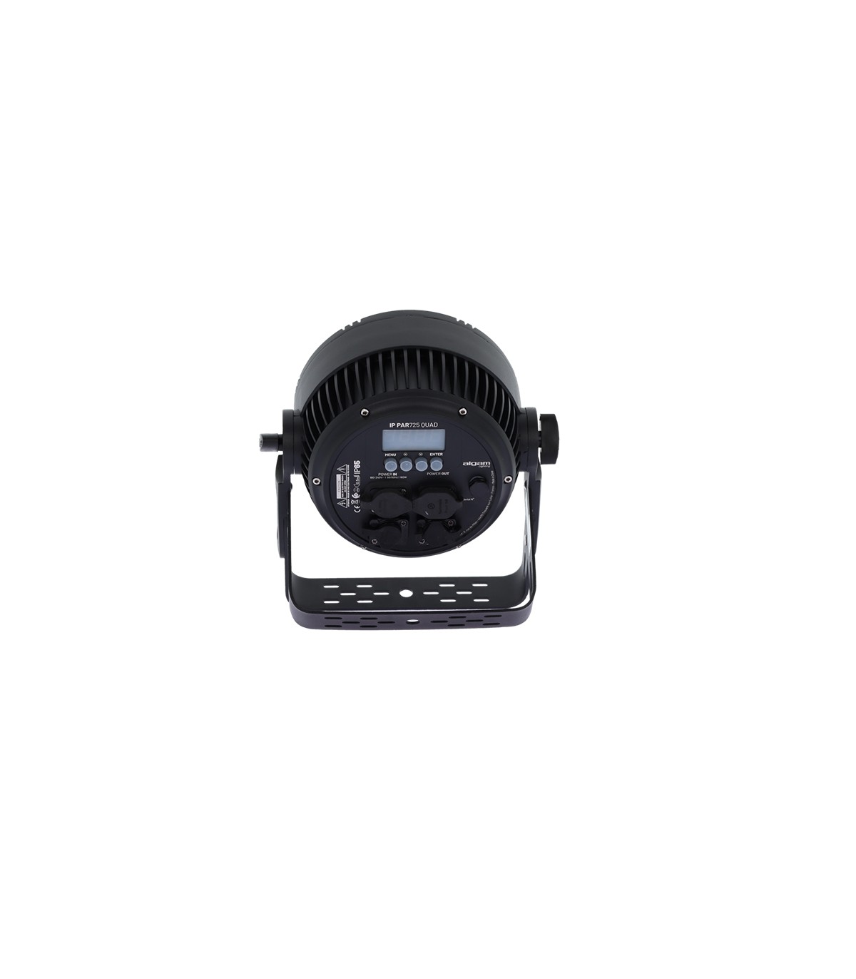 Beneficiando della protezione IP65, IP PAR 725 QUAD è dotato di connettori Seetronic sigillati sulla macchina e viene consegnato con cavi di alimentazione PowerCon e DMX IP per evitare qualsiasi infiltrazione nei connettori. Molto completo, questo proiettore è in grado di funzionare in modalità automatica, reagire alla musica ambientale, essere controllato tramite un controller DMX o un dispositivo master e può anche essere configurato tramite la tastiera di controllo sul retro.