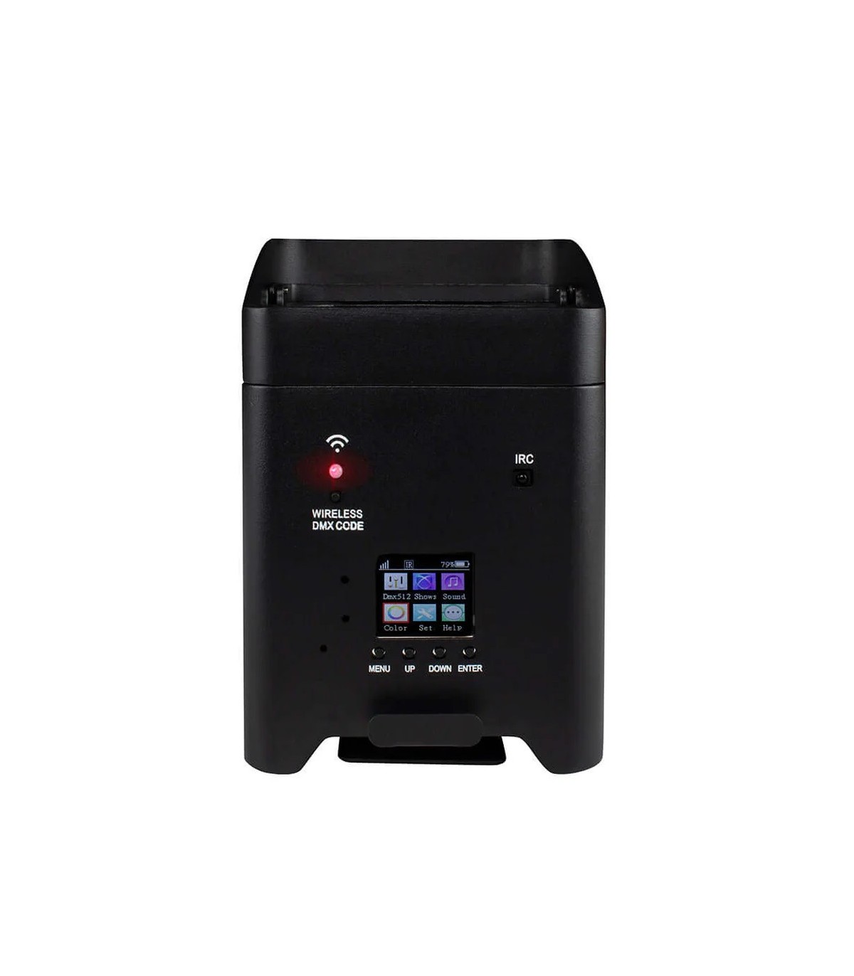 SHEHDS KIT FLIGHT CASE + 10 ARCHITETTURALI LED 6 x 18 WATT RGBWYP A BATTERIA RICARICABILE DMX CONTROLLO APP MASTER SLAVE WIRELESSBundle di 10 Par led architetturali a batteria ricaricabile 6x18W 6 colori RGBWAP controllabile via app o dmx512 wireless dmx + flight case di ricarica.Caratteristiche tecniche: Tipo prodotto: batteria e uplight wireless Alimentazione: AC100-240V / 50-60Hz Consumo: 110W Fonte luminosa: 6x18W RGBWYP 6in1 LED ad alta luminosità Angolo del fascio: 40 ° Canali DMX: 6 / 10CH Strobo 20hz Grado di protezione: IP44 Modalità di controllo: Auto-run, Master / Slave, Sound-Active, DMX512, APP. Telecomando IRC Integrato: ricevitore e trasmettitore wireless Ricezione segnale DMX wireless (17 metri campo libero) Indicatori: display digitale a LED Durata batteria: 4 ore (full on) / 10-12 ore (auto) / 20 ore (colore singolo) Batteria da 8800 mAh Tempo di ricarica: 7 ore Chassis in metallo Controllo wireless tramite APP (android iOS) Dimensioni: 135 x 135 x 200mm Peso: 2.35kg Il bundle comprende 10 fari e un case di ricarica con alimentazioni separate Dimensioni case: 86 x 48 x 41 cm Peso (fari esclusi): 19.76 Kg