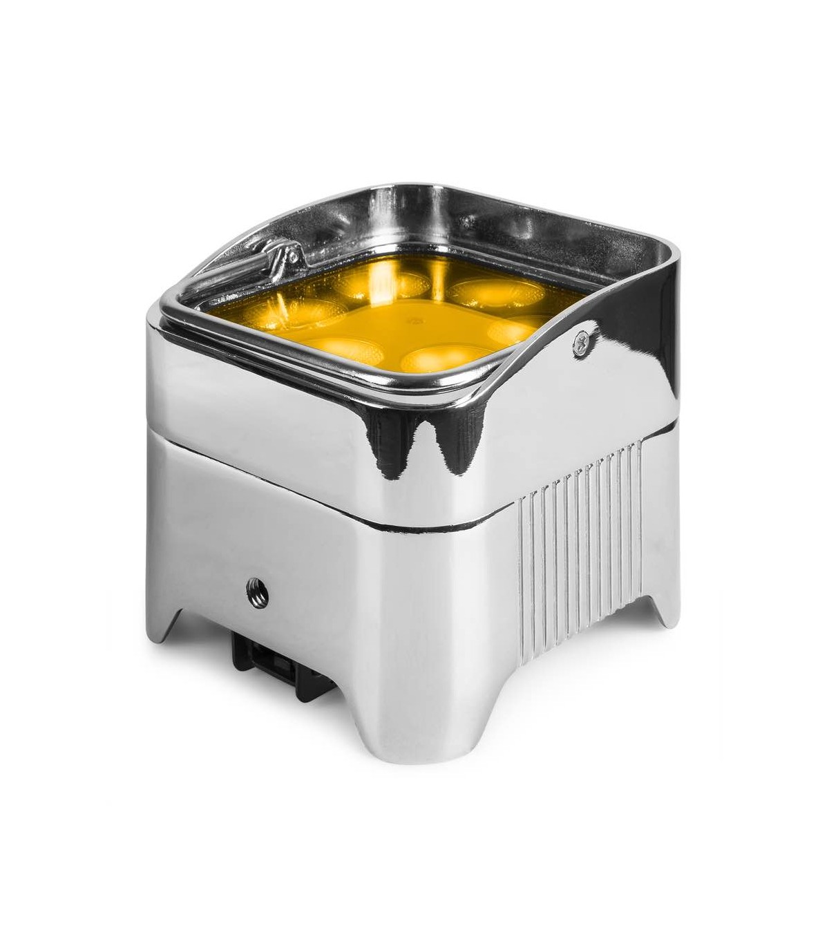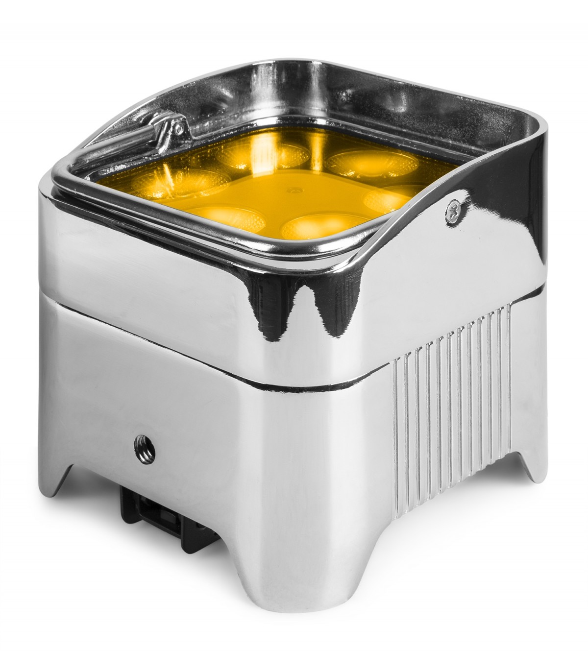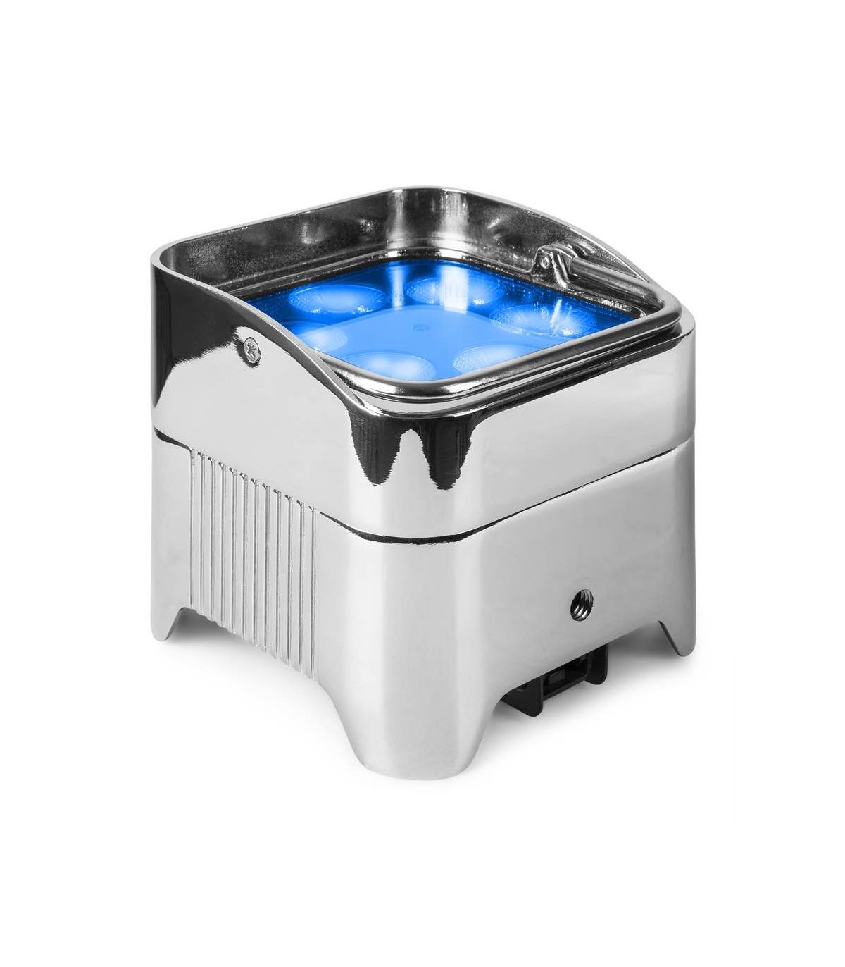 BBP96SC è un par a batteria ideale per l’uso come dispositivo di illuminazione uplight equipaggiato con 6 LED 6 in 12 pollici 6-in-1. Il BBP96SC è dotato di una batteria da 9,6 Ah che dura oltre 9 ore quando è completamente carica. Grazie al piedino regolabile può essere installato con diverse angolazione. Ricevitore Wireless DMX integrato.