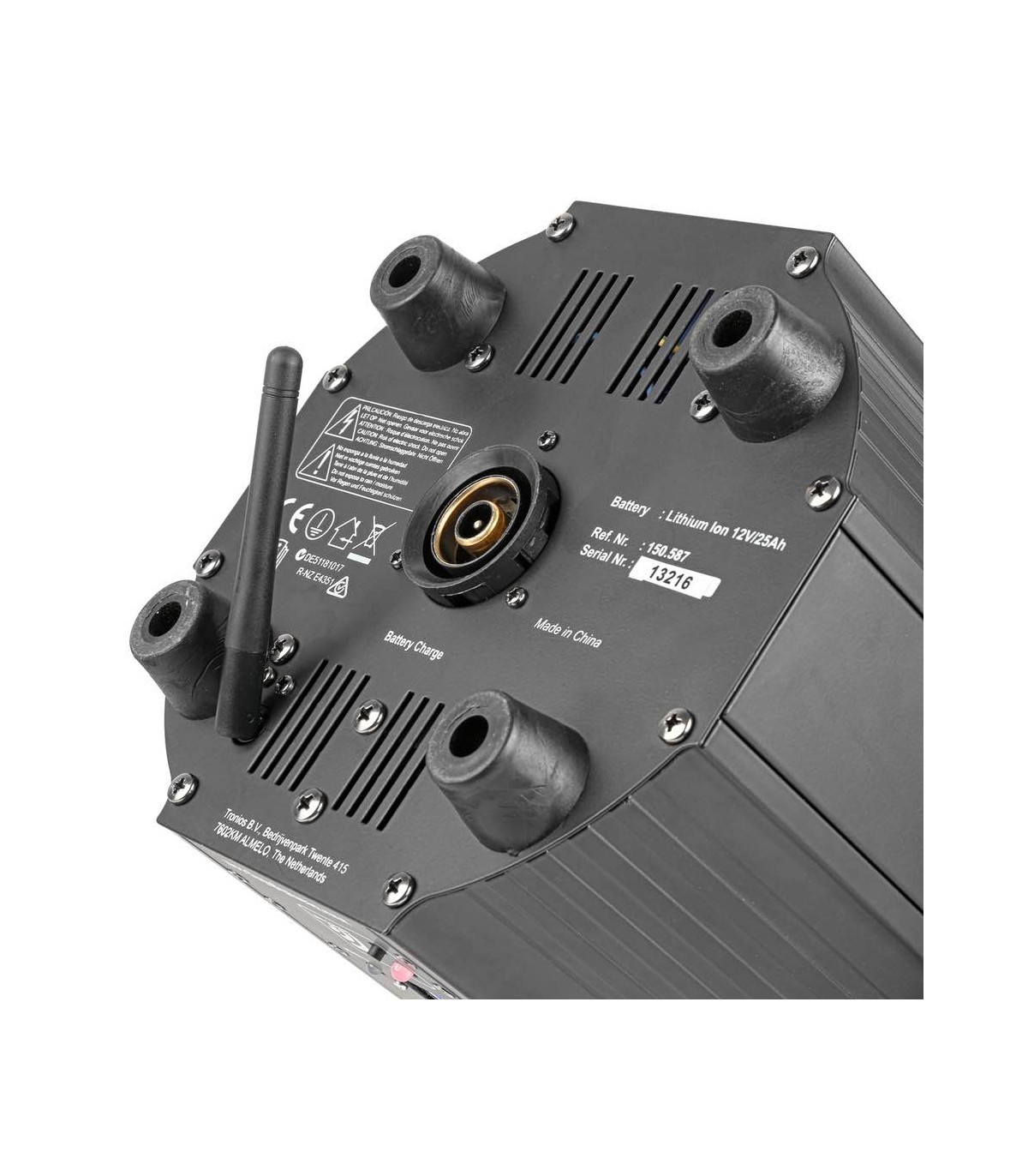 Un kit completo di 6 faretti BBP60 in un flightcase con stazione di ricarica integrata. Ogni BBP60 ha una batteria da 25 Ah che dura oltre 10 ore con un singolo ciclo di ricarica. Una volta terminato il concerto, puoi semplicemente rimettere gli apparecchi nella custodia e caricarli per tutta la notte. Ogni apparecchio ha uno speciale connettore di ricarica sul fondo che si collega direttamente al flightcase. Basta collegare il flightcase con una presa di corrente e il gioco è fatto. Questo set viene consegnato includendo un trasmettitore DMX wireless per andare completamente wireless senza la necessità di prodotti aggiuntivi. Ogni set è fornito come 6 uplight in un flightcase integrato.