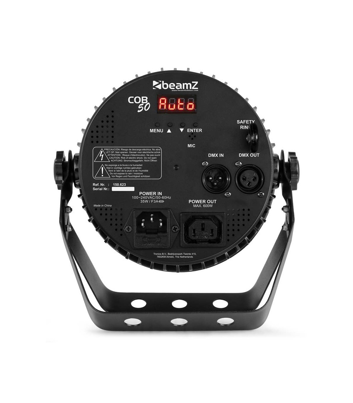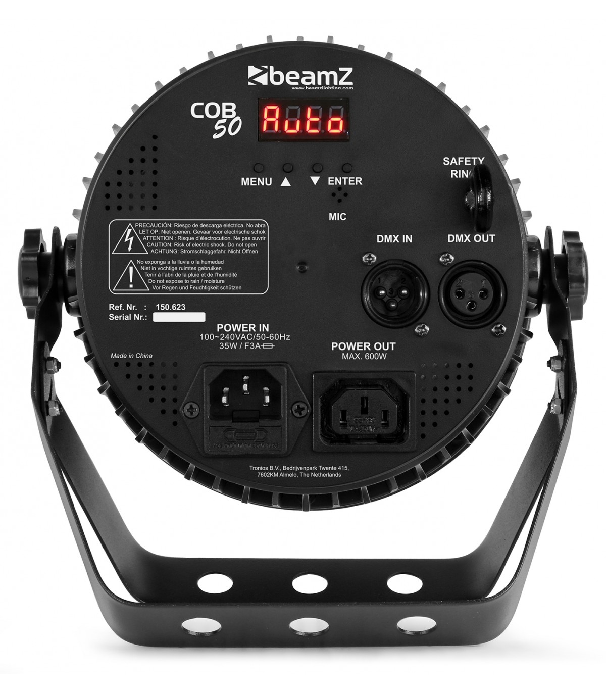 Il COB50 è un spot LED 50W ad alta potenza con un angolo a 60 ° con tecnologia COB (chip-on-board). Questo modello è RGBWA, con funzioni miscela colore, Dimmer, Strobe e DMX.