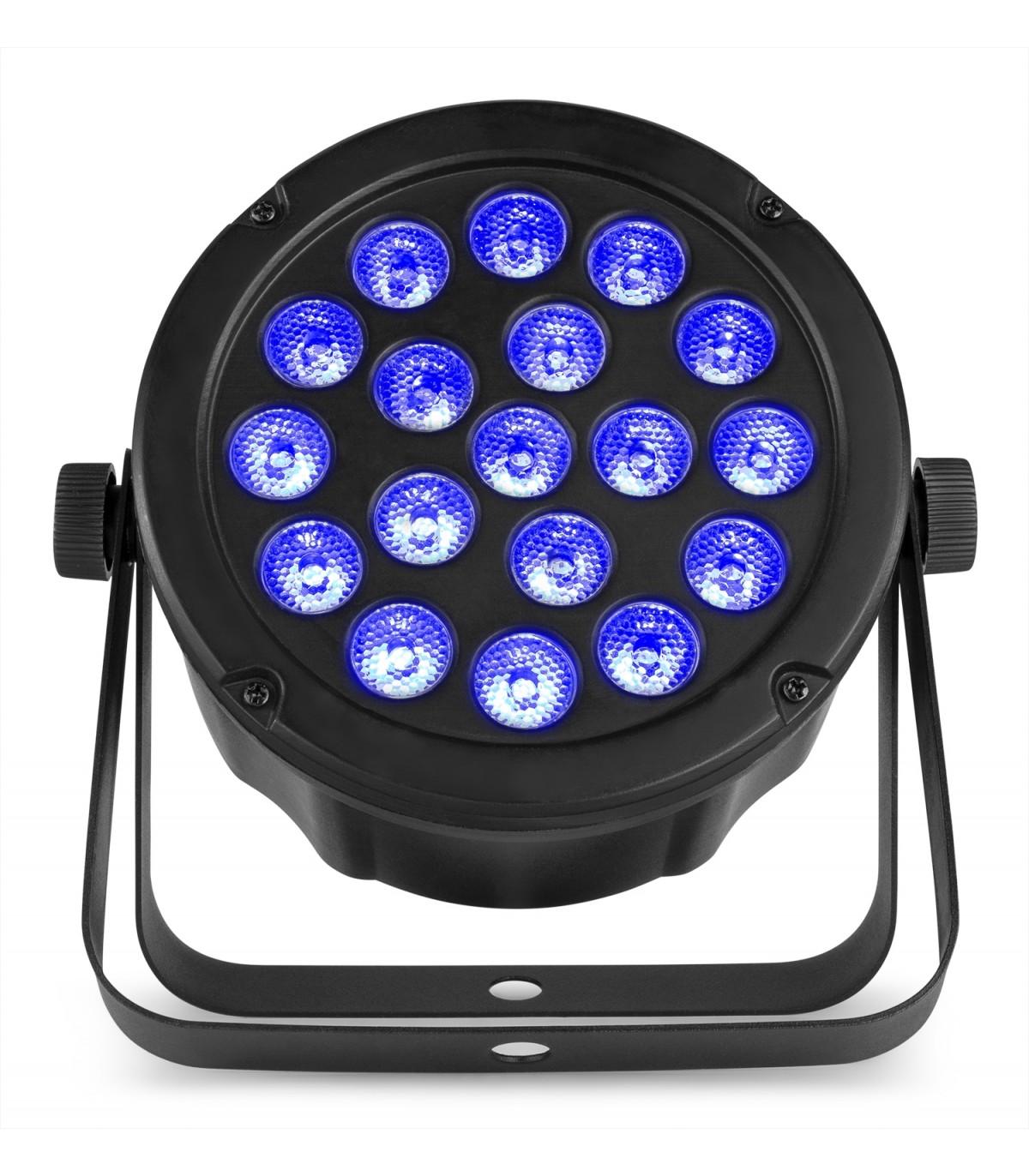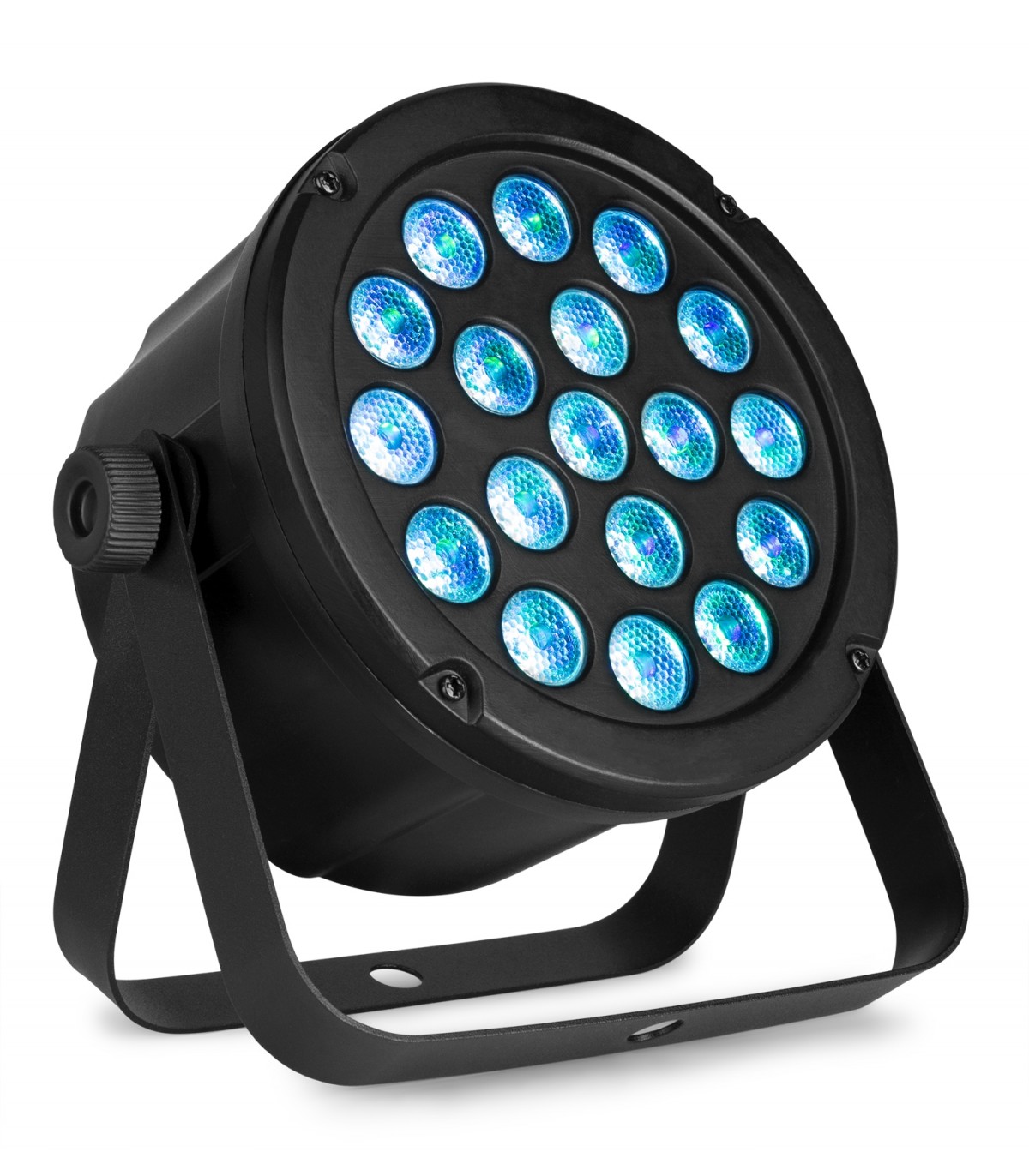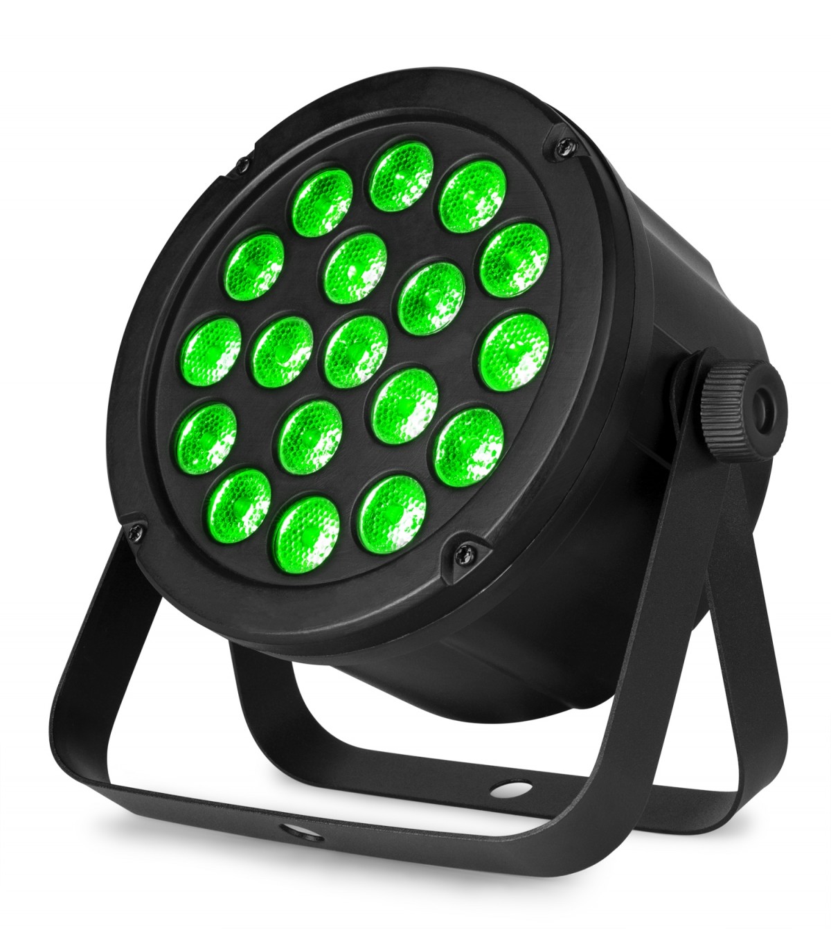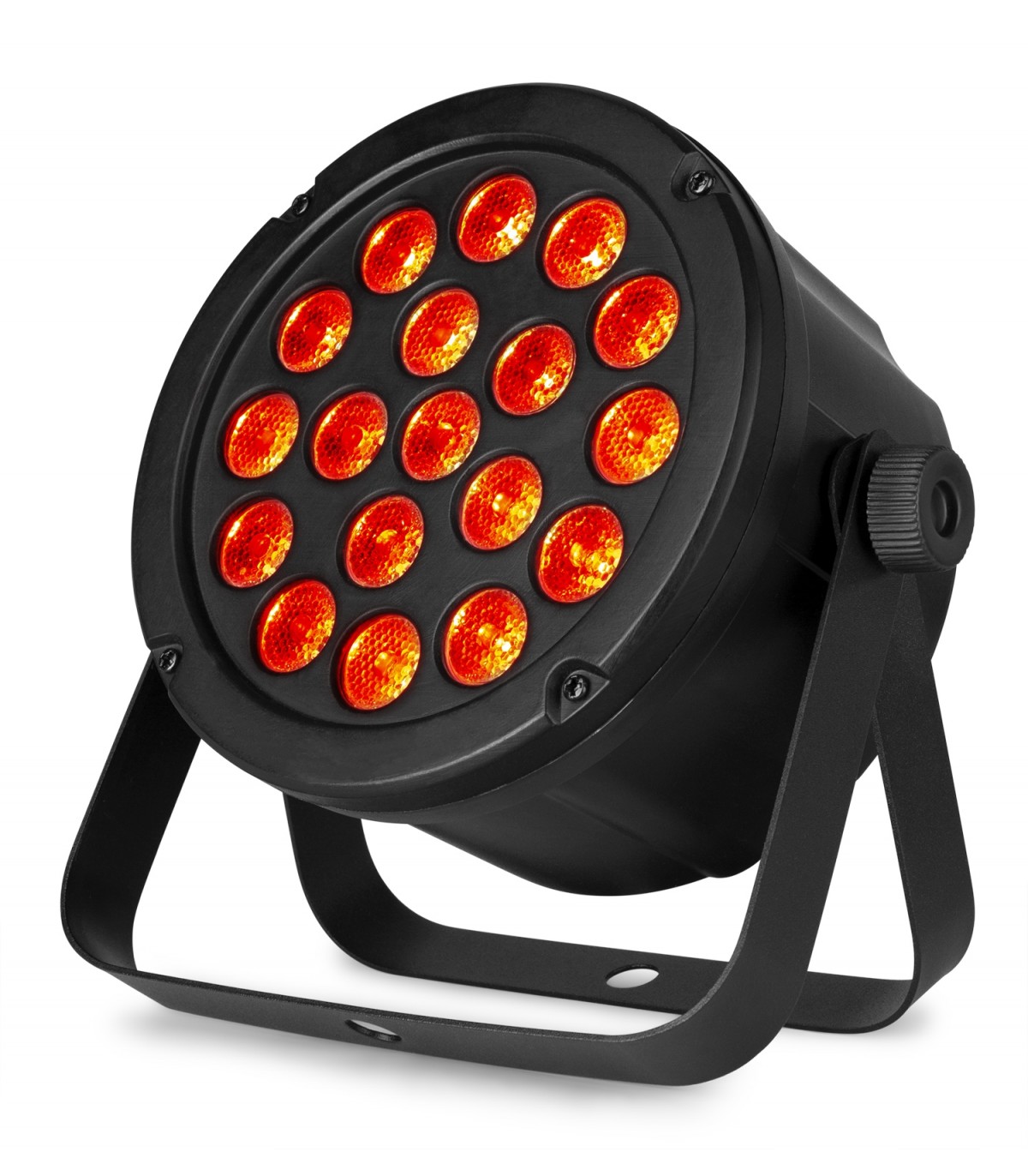 SlimPAR45 è la versione più grande della serie SlimPAR. È dotato di 18 LED RGB da 3W super luminosi in un involucro compatto che può adattarsi praticamente ovunque. Il PAR può essere controllato da DMX ma può anche essere usato stand alone o attivato tramite suono. Ogni colore è controllabile individualmente. Non ci sono ventole di raffreddamento interne in questi PAR, il che significa assolutamente zero rumore. È un effetto perfetto per DJ mobili, esibizioni dal vivo e tutte le altre applicazioni mobili, ma può anche essere montato in aree bowling, discoteche, club ecc.