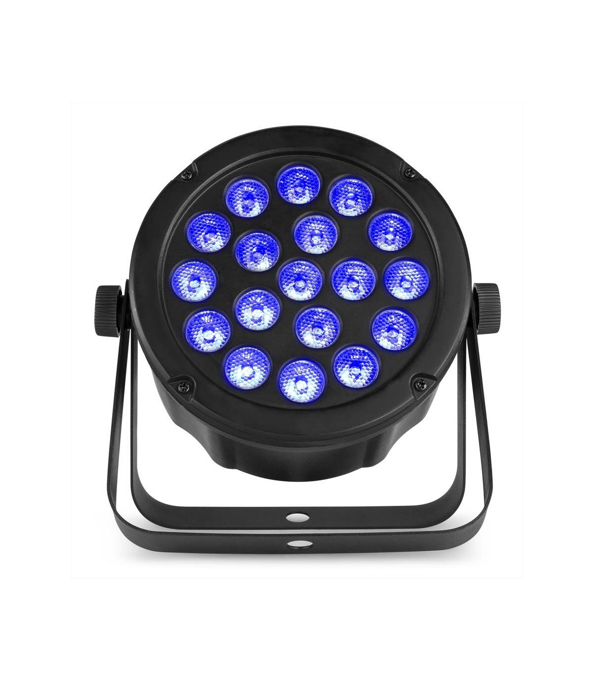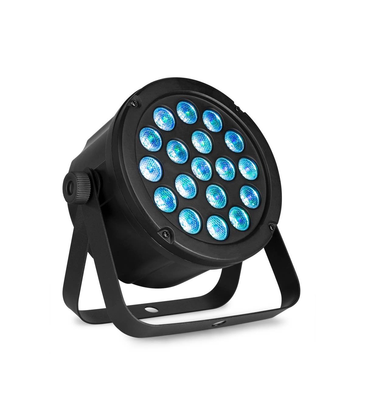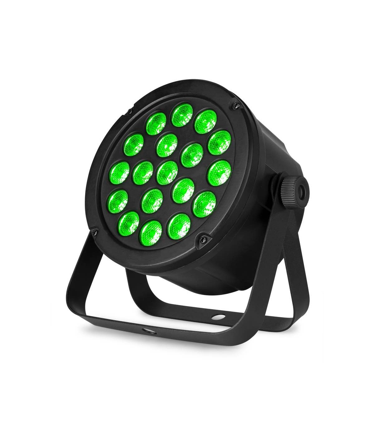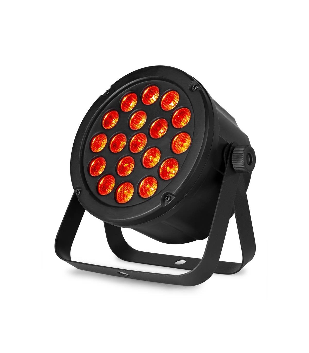 SlimPAR45 è la versione più grande della serie SlimPAR. È dotato di 18 LED RGB da 3W super luminosi in un involucro compatto che può adattarsi praticamente ovunque. Il PAR può essere controllato da DMX ma può anche essere usato stand alone o attivato tramite suono. Ogni colore è controllabile individualmente. Non ci sono ventole di raffreddamento interne in questi PAR, il che significa assolutamente zero rumore. È un effetto perfetto per DJ mobili, esibizioni dal vivo e tutte le altre applicazioni mobili, ma può anche essere montato in aree bowling, discoteche, club ecc.