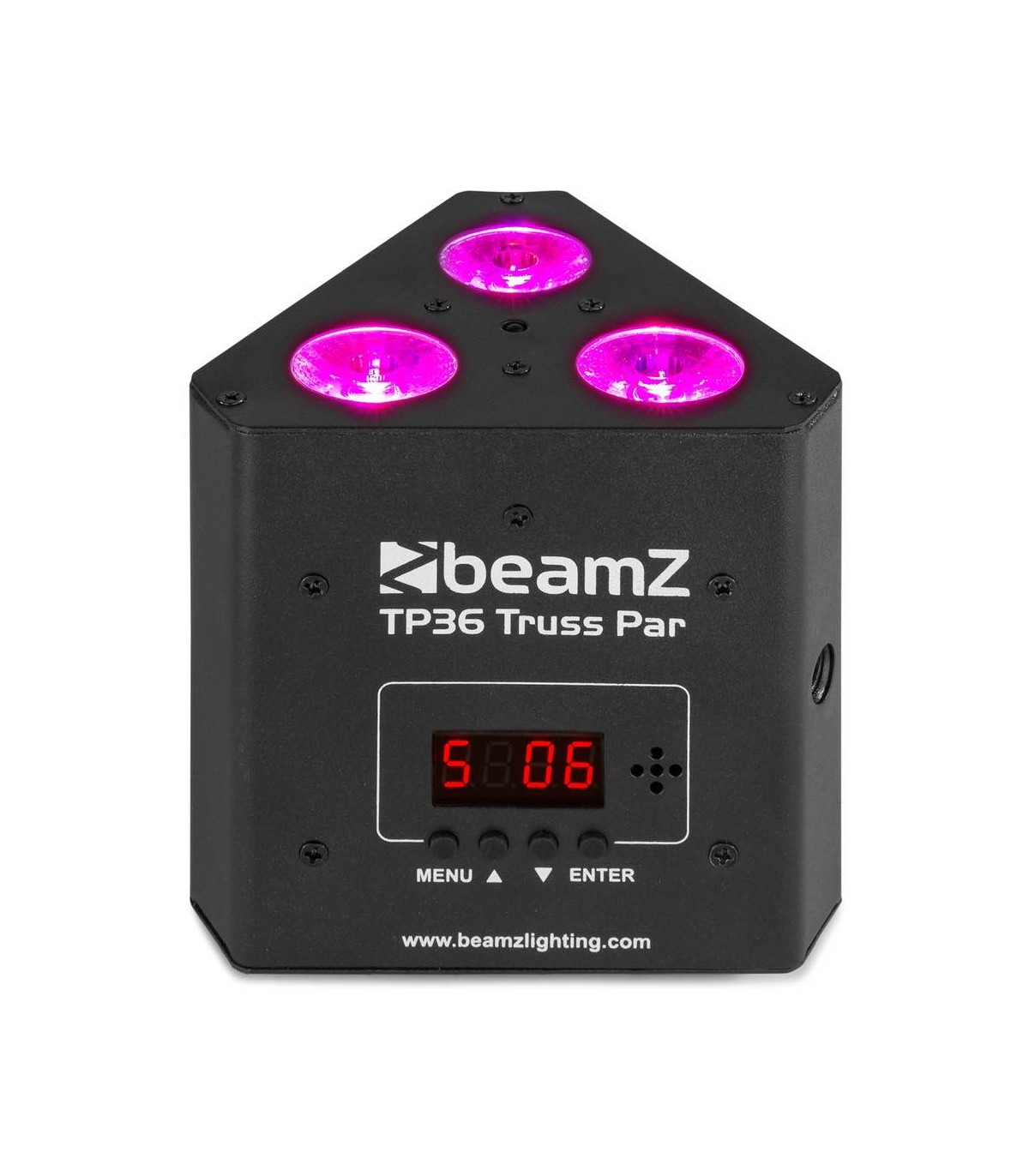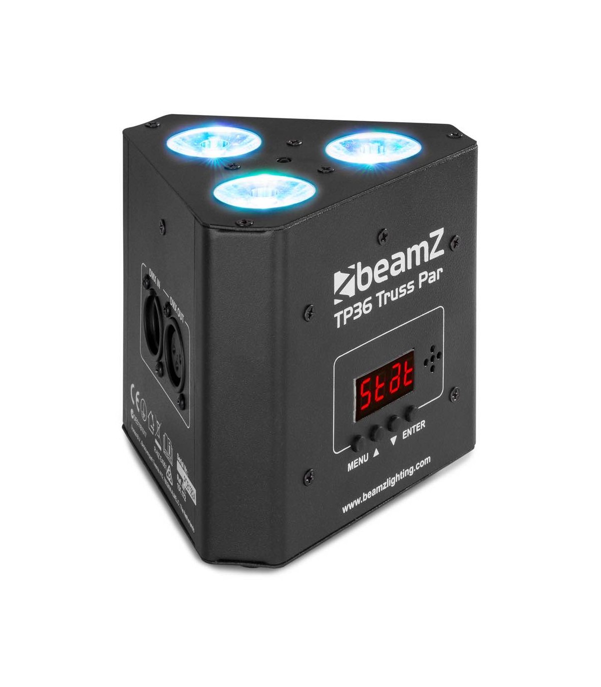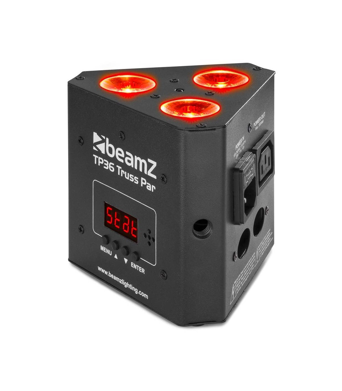 Il Beamz TP36 è un par compatto ideale per l'uso nelle TRUSS triangolari. Il faro perfetto per DJ, band e compagnie di produzione che vogliono illuminare la loro TRUSS. Dotato di 3 LED 4W super luminosi 4-in-1 con funzionalità di miscelazione dei colori RGB + UV. Incluso un telecomando.