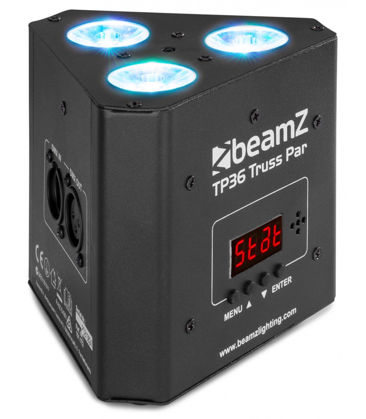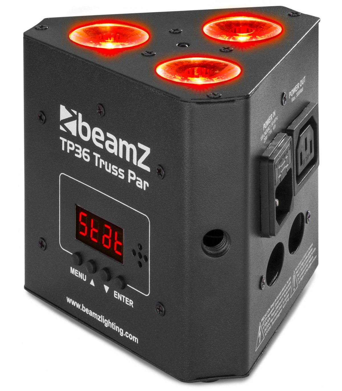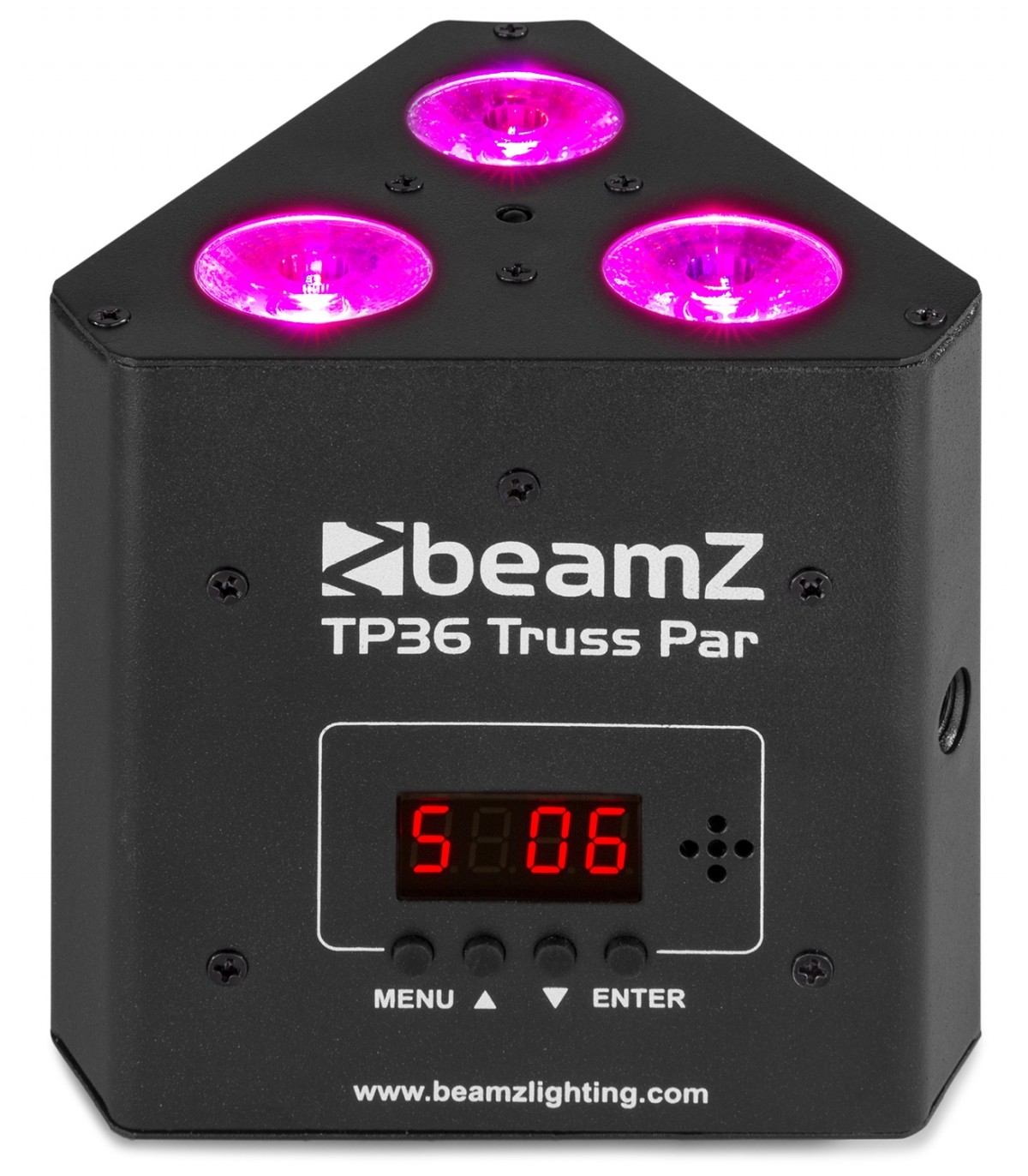 Il Beamz TP36 è un par compatto ideale per l'uso nelle TRUSS triangolari. Il faro perfetto per DJ, band e compagnie di produzione che vogliono illuminare la loro TRUSS. Dotato di 3 LED 4W super luminosi 4-in-1 con funzionalità di miscelazione dei colori RGB + UV. Incluso un telecomando.