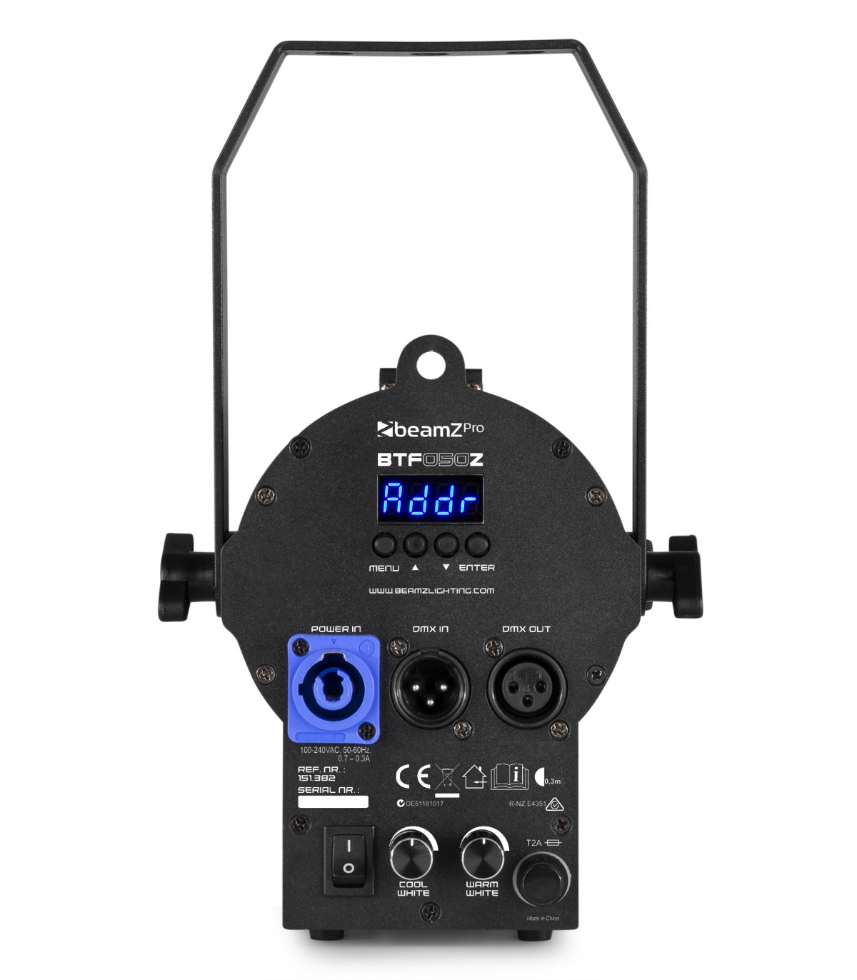 Il BeamZ BTF50Z è un mini LED Fresnel compatto appositamente progettato per le applicazioni di wash a breve distanza. La potenza del LED COB sintonizzabile da 50 W (2700 K – 6500 K) è perfettamente sfruttata, grazie al filtro Fresnel. Caratterizzato da uno zoom manuale da 25-90 gradi, un'ottica di alta qualità e l'uso di un alloggiamento in alluminio compatto, questo mini Fresnel è ideale per teatri, scuole, mostre e illuminazione di display.
