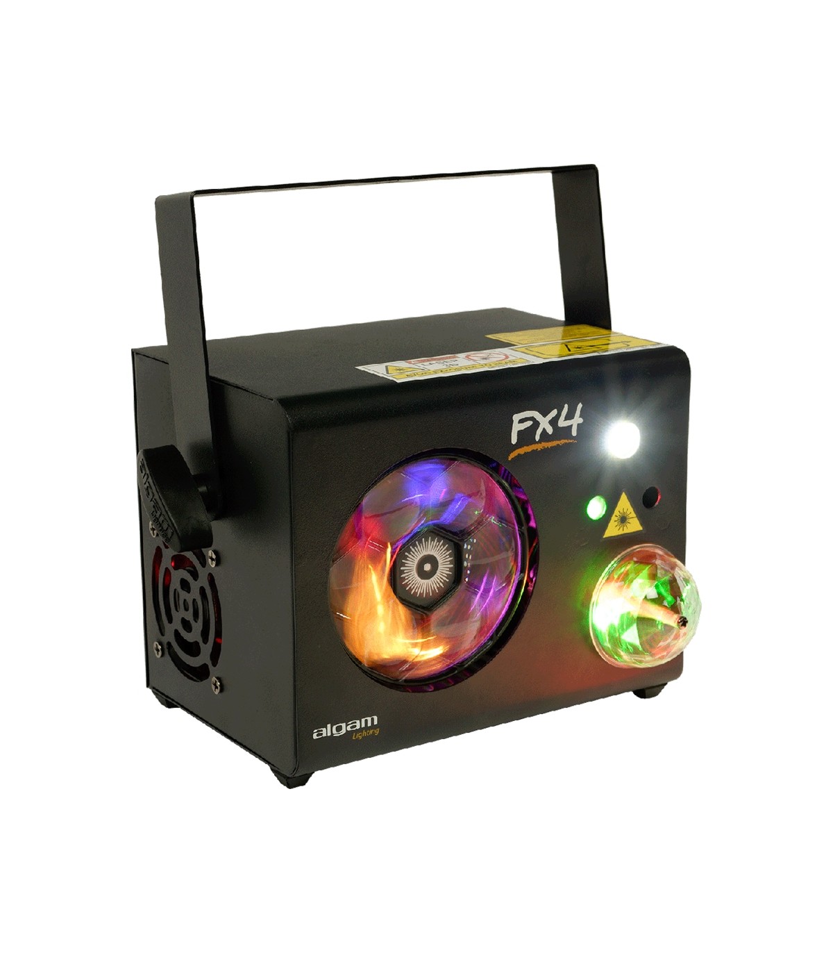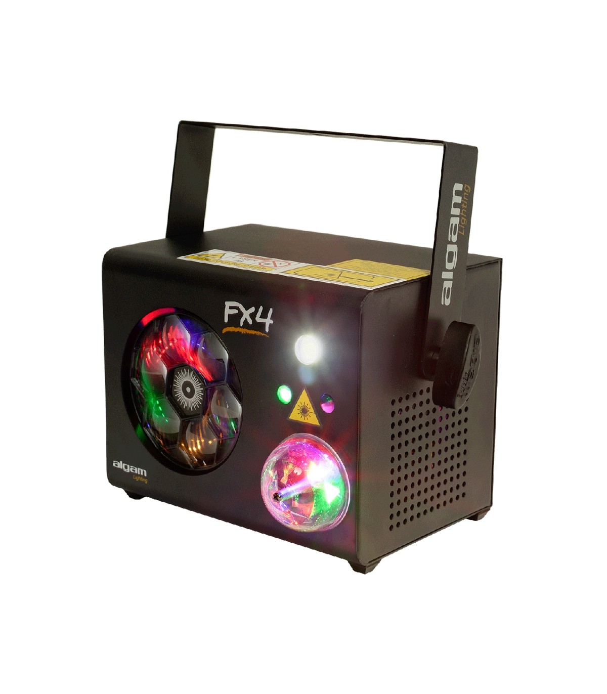 L'FX-4 di Algam Lighting è un sistema di illuminazione 4 in 1 compatto e conveniente, ideale per tutte le tue feste. Combina una ruota gobo LED RGB da 6x3W, una Magic Ball 3x3W, un laser multipunto rosso/verde e uno strobo per vari effetti di luce. Facile da usare, è dotato di modalità automatica, rilevamento della musica e 14 canali DMX per un controllo preciso.