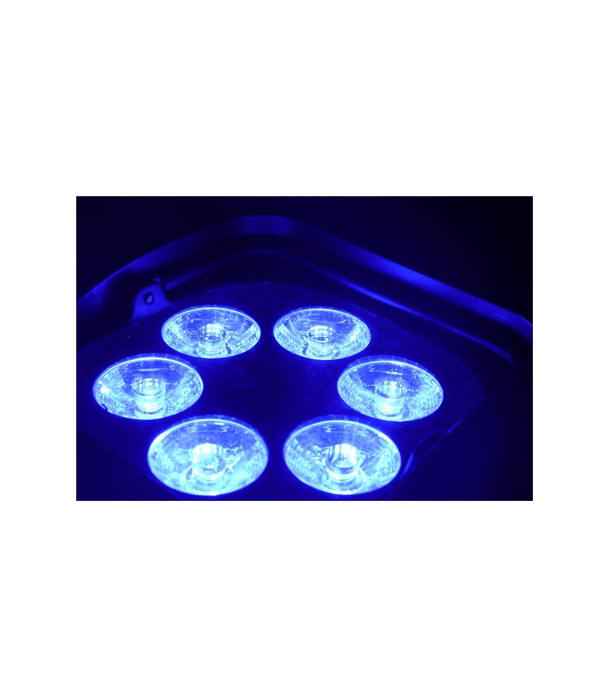 - Sorgenti luminose: 6 LED RGBWA+UV da 12 W