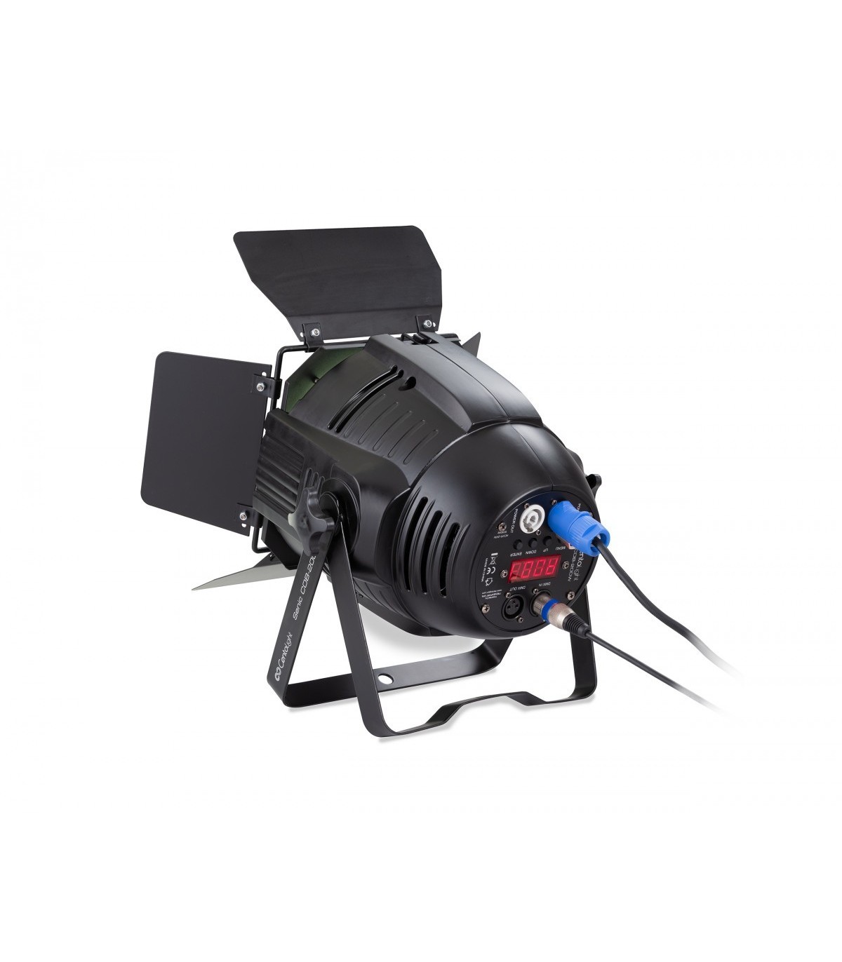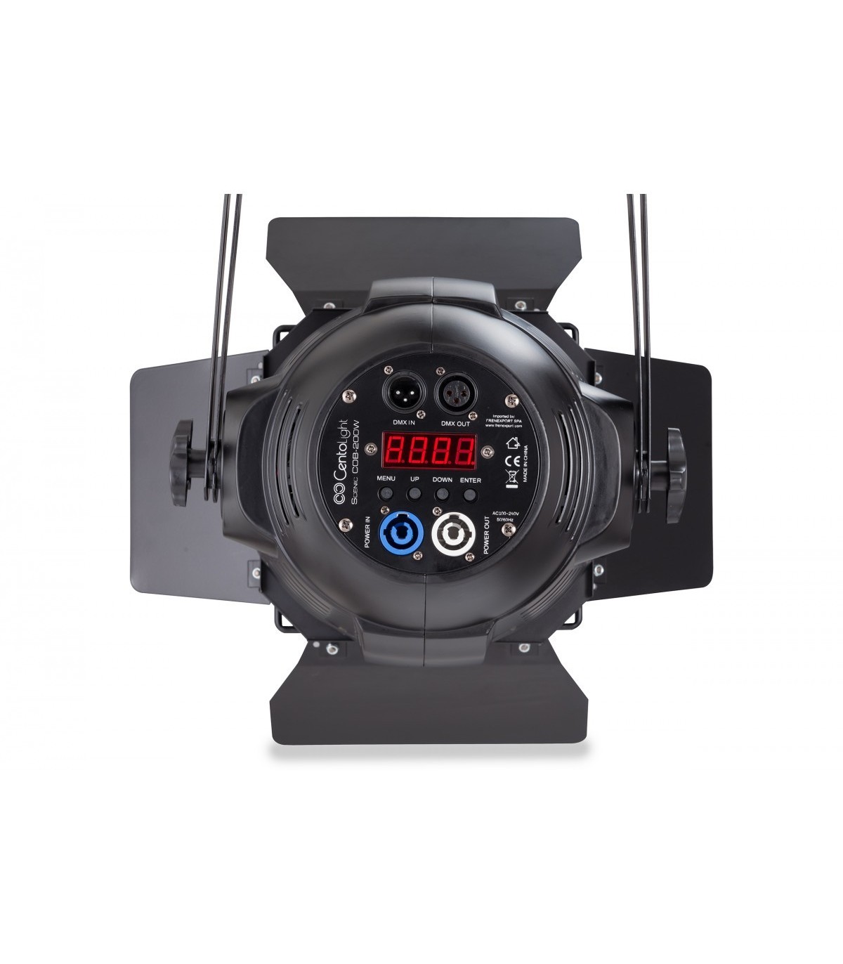 Centolight SCENIC COB-200W è un Par a LED da 200W COB con fascio luminoso a 60°. La sorgente luminosa combina Bianco Caldo a 3200K e Bianco Freddo a 6500K, entrambi controllabili separatamente in modalità manuale o DMX. Nasce per tutte quelle applicazioni con illuminazione a temperatura colore variabile, come spettacoli live, discoteche, negozi, ecc. La silenziosità è garantita dalla qualità della ventola di raffreddamento controllata dal processore interno, che mantiene la rumorosità complessiva entro i 20dB @ 1m di distanza. La struttura del faro è in alluminio pressofuso, per la massima leggerezza e robustezza. Il faro è anche dotato di alette frontali richiudibili.