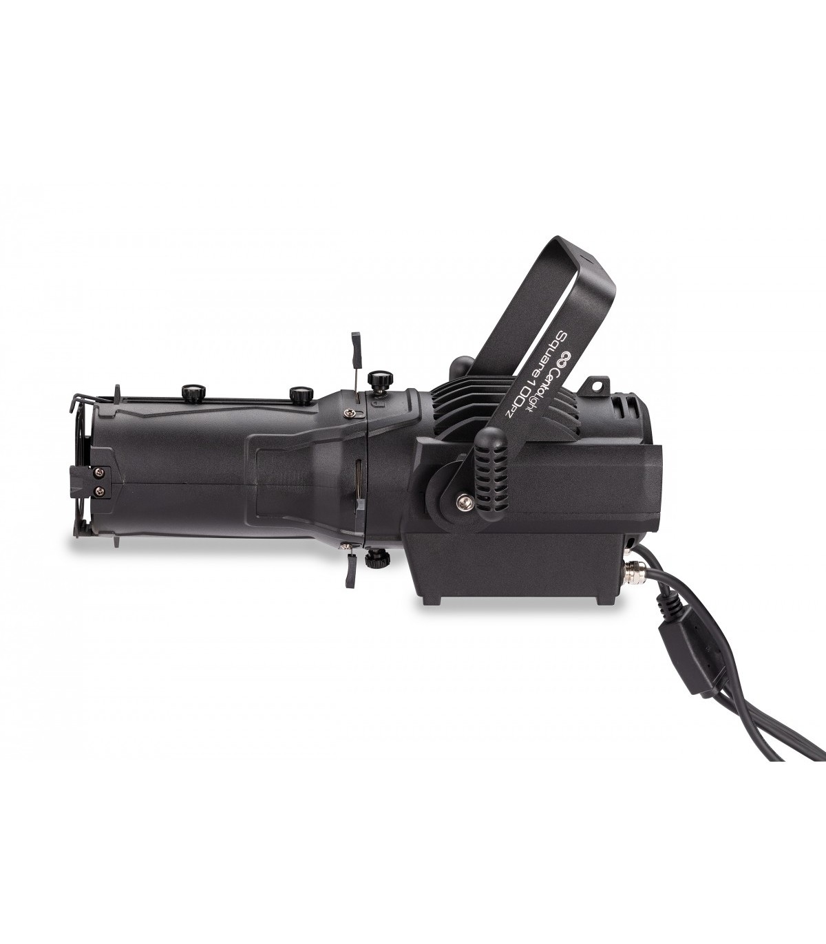 Centolight SQUARE 100PZ è un mini sagomatore professionale a LED con fascio luminoso regolabile tra 15° e 30° tramite zoom e messa a fuoco manuali. È pensato per tutte quelle installazioni di piccole e medie dimensioni dove è richiesta una illuminazione Bianca Calda (circa. 3.100K), un fascio luminoso regolabile e la possibilità di proiettare gobo (ad es. negozi, showroom, vetrine, musei, auditorium, ecc.). La sorgente luminosa è un Led COB da 100W Edison® con CRI =90 per favorire una ottima resa cromatica, soprattutto in luoghi al chiuso. Le dimensioni del faro sono molto compatte e la realizzazione in alluminio die-cast favorisce la dissipazione del calore. Il sistema di raffreddamento usa ventole di qualità al fine di contenere il rumore entro i 25dB a 1m di distanza. Il sistema a 4 ghigliottine permette una regolazione sia radiale che entro certi limiti ad angolo di inclinazione del flusso luminoso. Il sagomatore è dotato di vano per l inserimento del porta-gobo (opzionale) per gobo in vetro o metallici, nonché del portagelatine frontale (incluso).