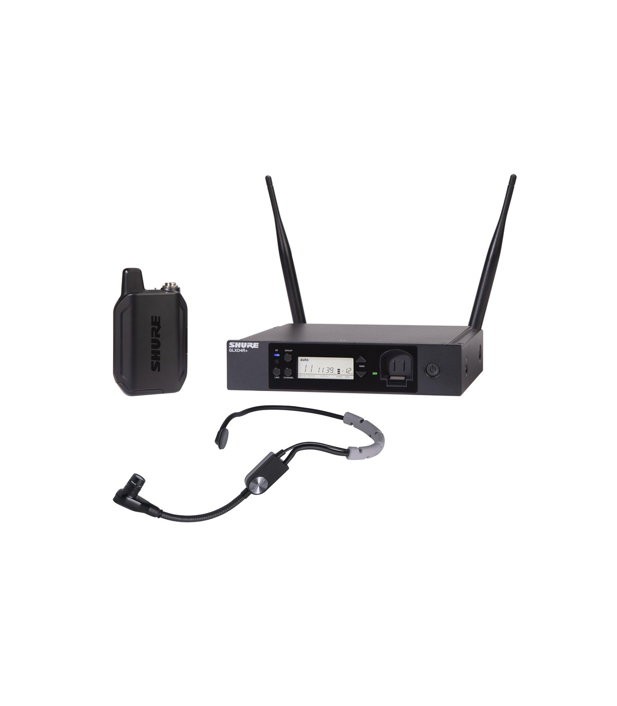Sistema wireless completo GLX-D+ a doppia banda (2.4GHz e 5.8GHz) con microfono ad archetto SM35. Include il trasmettitore bodypack GLXD1+ e il ricevitore GLXD4R+ a mezza unità rack. La perfetta combinazione della gestione automatica delle frequenze con la tecnologia a doppia banda (2.4GHz e 5.8GHz) garantisce prestazioni affidabili e coerenti. Le batterie ricaricabili al litio proprietarie di Shure offrono fino a 12 ore di utilizzo.