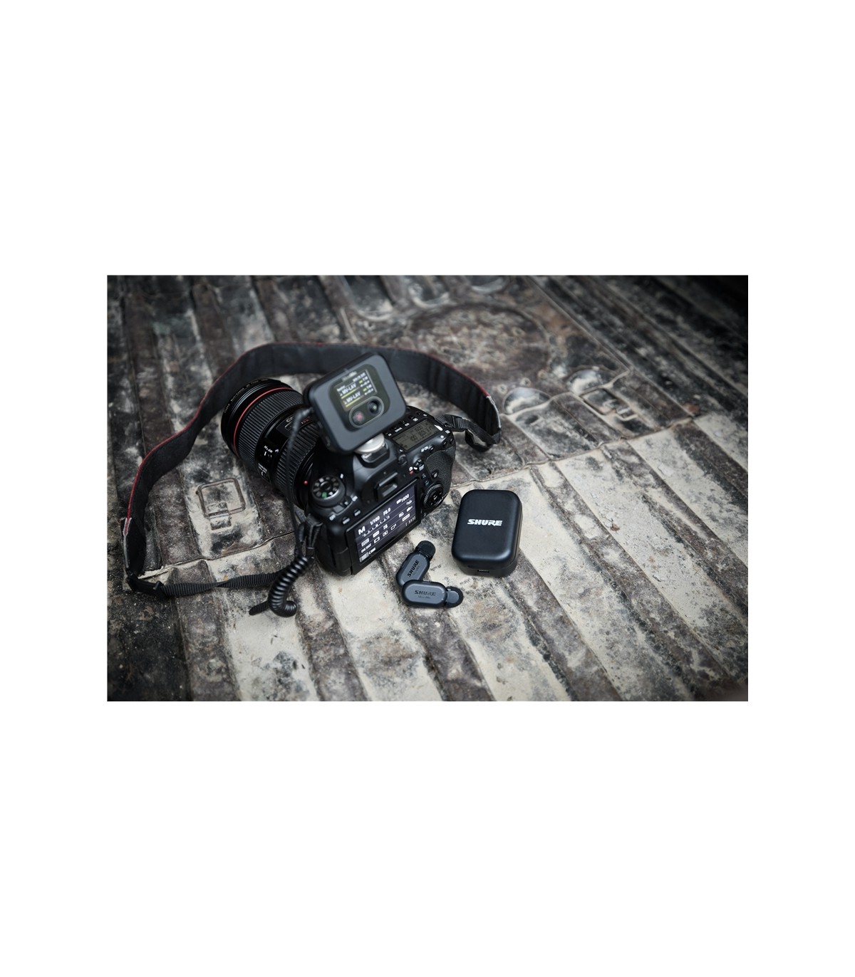 La perfetta integrazione con le app SHURE MOTIV Audio e MOTIV Video vi consentirà di registrare e produrre i vostri contenuti in modo estremamente intuitivo e rapido. In dotazione troverai una custodia di ricarica per un’autonomia totale di circa 24 ore. Il ricevitore MOVEMIC incluso nel kit è comodamente installabile sulla slitta (hot shoe) della tua telecamera o fotocamera.