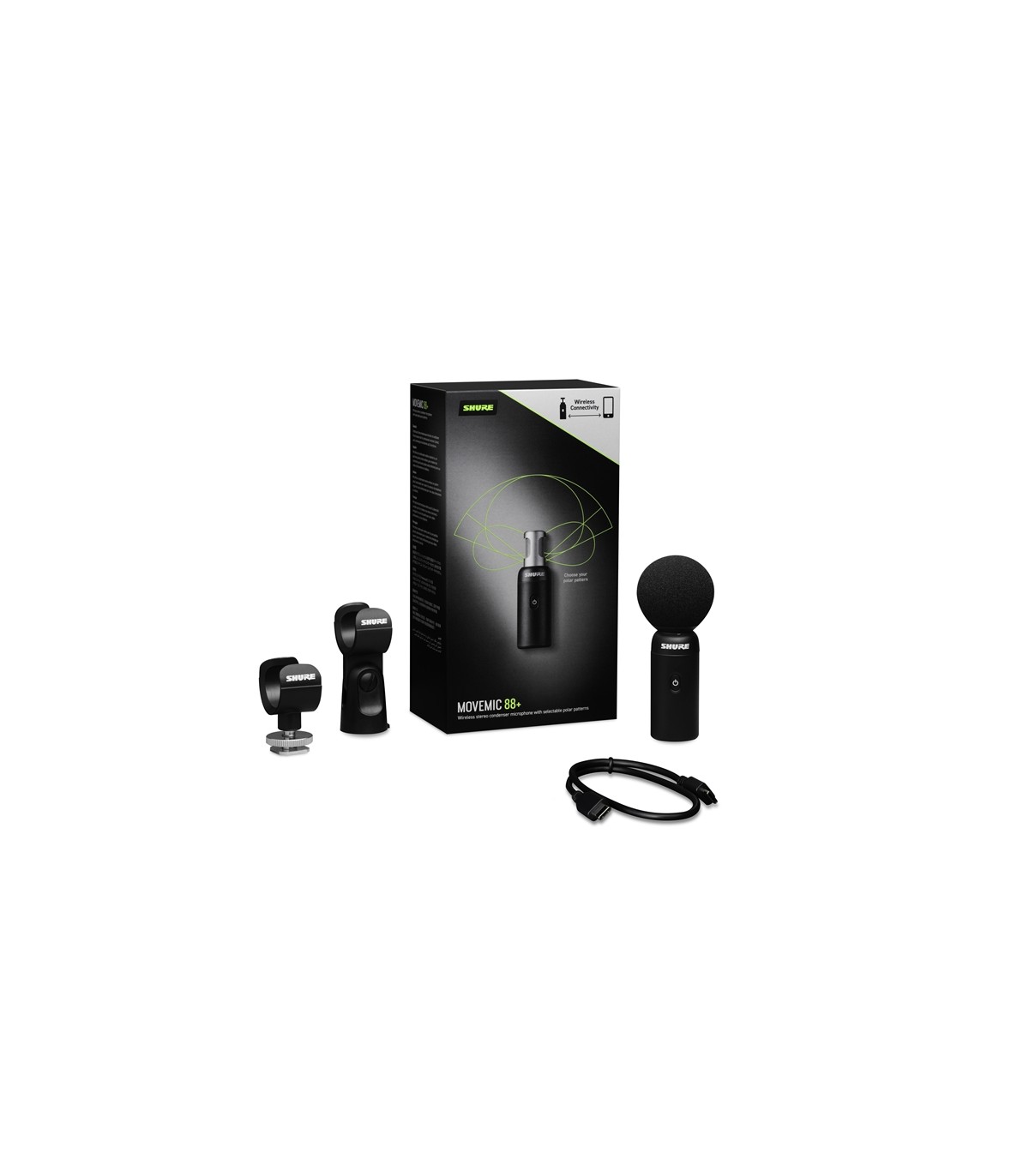 Shure MoveMic 88+ è un microfono wireless stereo compatto, con quattro diagrammi polari selezionabili via app, ideale per content creator, giornalisti, videomaker e musicisti. Totalmente senza fili, si collega direttamente a smartphone iOS e Android tramite le app Shure MOTIV Video e MOTIV Audio, senza necessità di ricevitore.