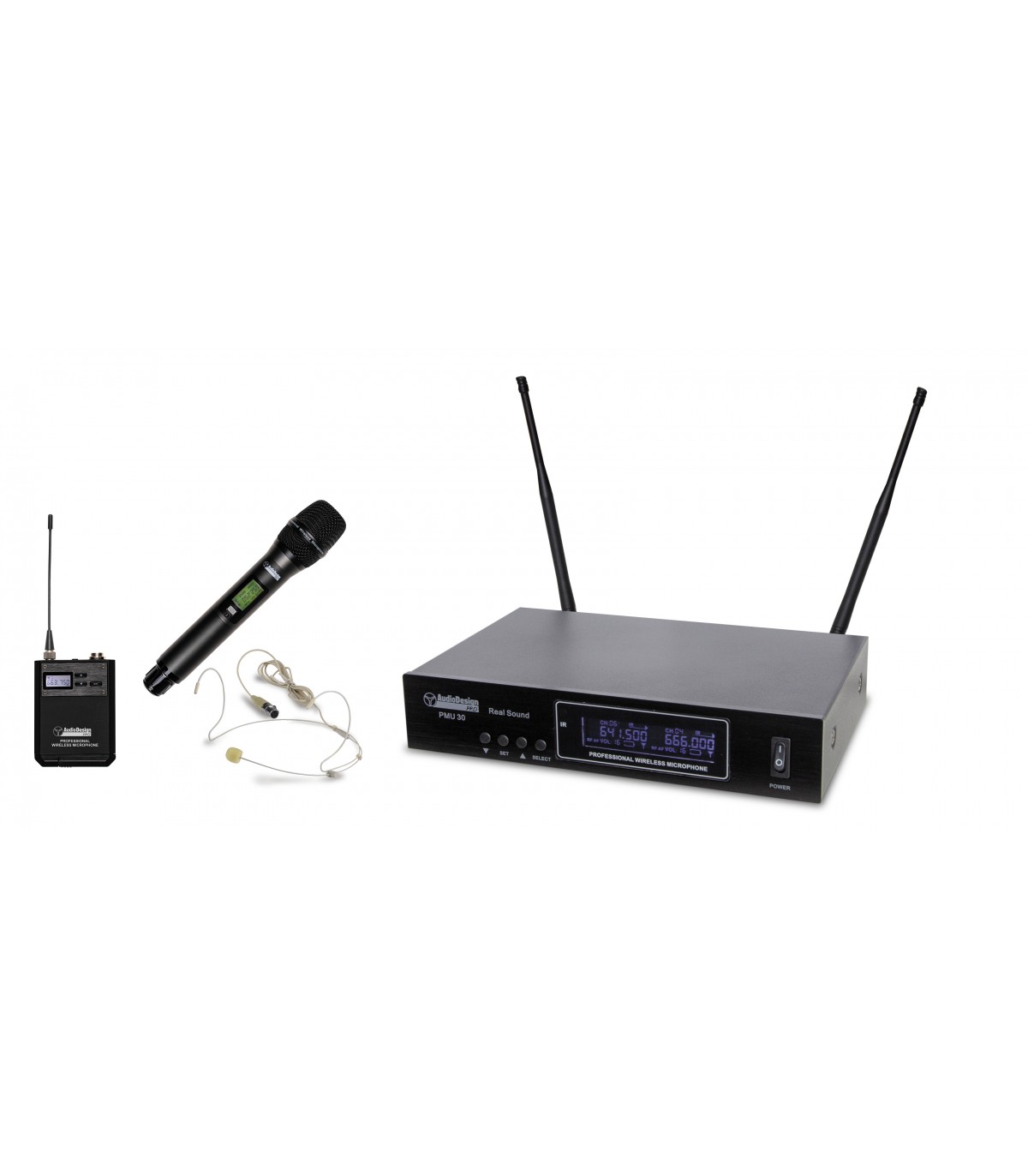 Radiomicrofono a 200 Ch UHF con 1 microfono gelato +1 archetto avorio+body pack UHF 635,00 - 684,75 Mhz