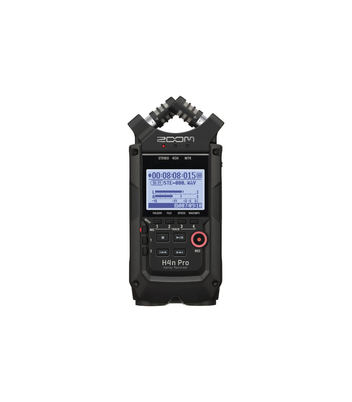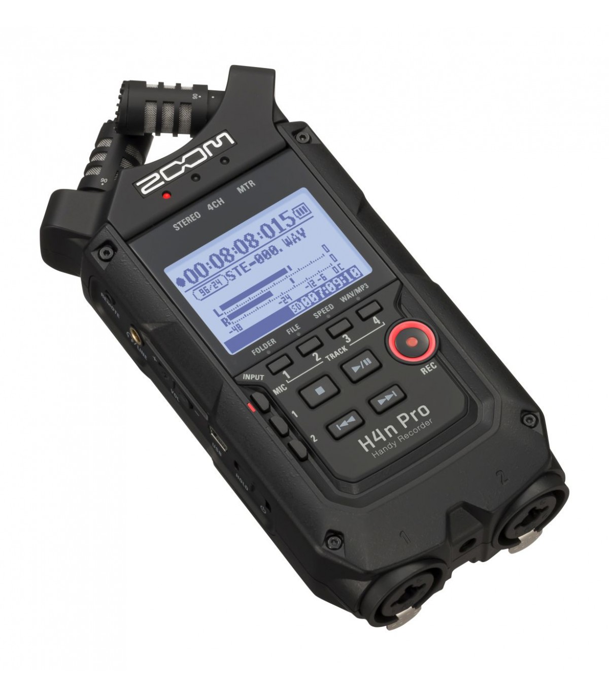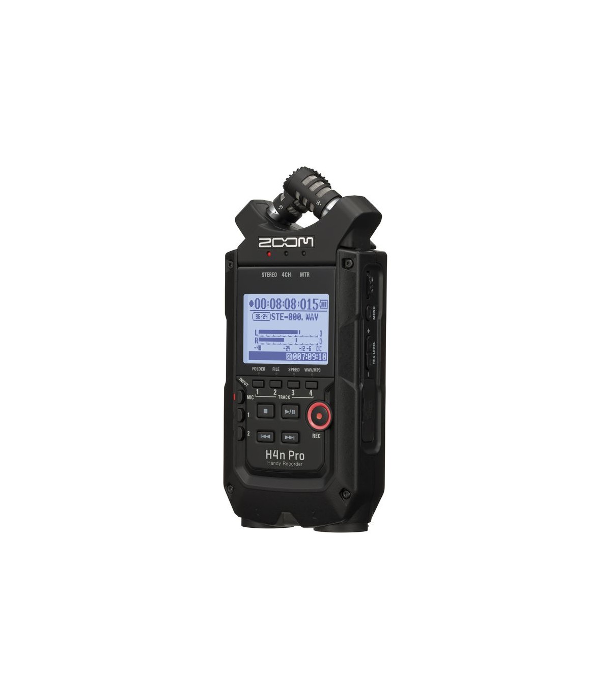 L'H4n Pro è leggero (294g) con un design molto compatto ed è dotato di microfoni stereo a condensatore di alta qualità disposti in un modello di pickup XY, un altoparlante incorporato, registrazione su scheda SD, un mixer ed effetti interni. Con l'H4n Pro puoi divertirti a creare la tua musica in qualsiasi momento. L'H4n Pro è in grado di registrare in diverse modalità operative. La modalità STEREO consente la registrazione stereo di alta qualità. 4CH è in grado di registrare contemporaneamente 2 sorgenti audio in stereo. La modalità MTR consente la riproduzione di 4 tracce e la registrazione di 2 tracce contemporaneamente. Puoi usarlo come feld recorder per registrare melodie ed esibizioni di band on-the-fy e acquisire effetti sonori. Puoi anche usarlo come registratore multitraccia per creare canzoni con strumenti e voce sovraincisi. Inoltre, in modalità STAMINA è possibile registrare in stereo per un massimo di 11 ore utilizzando solo le batterie. Lo Zoom H4n Pro ti consente di regolare l'angolazione dei microfoni integrati per affrontare un'ampia gamma di scenari di registrazione. Imposta i microfoni a 120° per un'area del suono più ampia oppure impostali a 90° per una fonte sonora più focalizzata. In entrambi i casi, i microfoni mantengono la loro configurazione XY, quindi è possibile registrare un suono stereo naturale senza annullamento di fase. L'H4n Pro include un jack di ingresso per consentire una varietà di stili di registrazione. Microfoni, inclusi microfoni stereo e a condensatore, chitarre elettriche, bassi e tastiere possono essere collegati direttamente. Una porta USB 2.0 ad alta velocità integrata consente la connessione diretta al computer. Puoi usarlo come interfaccia audio con effetti integrati (frequenza di campionamento limitata a 44.1kHz quando usi gli effetti). E' inoltre possibile utilizzare H4n Pro come lettore di schede SD per computer. E' possibile trasferire i file sul computer e utilizzarli per creare CD audio o lavorarci nel software DAW. Le funzioni dell'accordatore includono non solo un accordatore cromatico standard, ma supportano anche accordature meno comuni, come chitarre a 7 corde e bassi a 5 corde. Il metronomo è comodo per esercitarsi e per la registrazione multitraccia. E' inoltre possibile utilizzare H4n Pro come dispositivo per fare pratica. Utilizza SPEED per regolare la velocità di riproduzione dal 50 al 150%. Le funzioni KARAOKE includono il cancellamento centrale per il controllo di file stereo ed il controllo variabile della tonalità, che lo rendono prezioso per l'apprendimento delle lingue e l'allenamento vocale.
