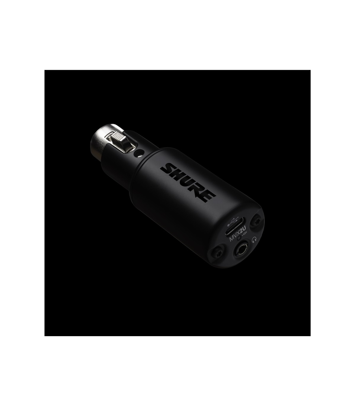 Shure MVX2U rappresenta una soluzione perfetta per chi è alla ricerca di un adattatore da USB a XLR per collegare il proprio microfono preferito al computer. Per registrare la voce, fare videochiamate e conferenze, o per i live streaming: dal gaming alle dirette sui social, Twitch, Youtube, etc. Dall’amatore al professionista, dal gamer allo speaker, in tanti possono trarre giovamento dall’impiego di questa scheda audio USB compatta integrata in un piccolo cilindretto in metallo di colore nero, elegante e dal design minimal, che ad un capo monta un connettore XLR nel quale puoi inserire direttamente il tuo microfono, oppure collegarcelo mediante un cavo XLR. All’altro capo, la MVX2U ci presenta il connettore USB C e l’uscita cuffia formato mini-jack da 1/8” per il monitoring in tempo reale.