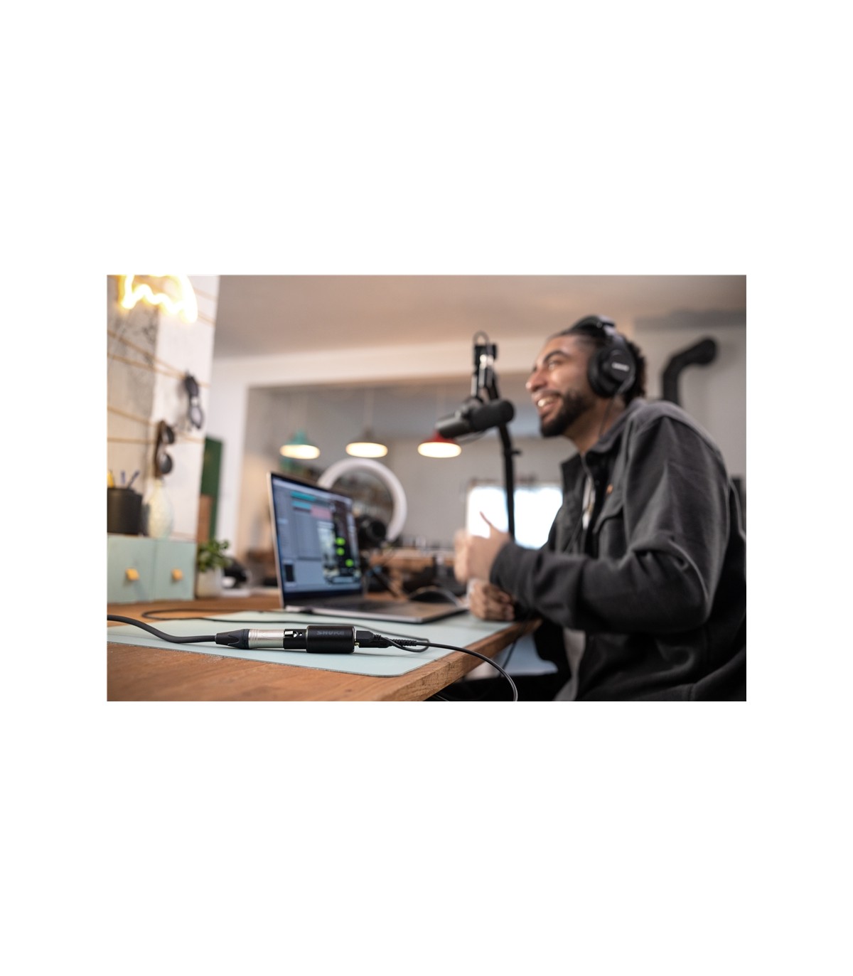Shure MVX2U è un’interfaccia audio USB C estremamente compatta, che si interpone tra il tuo microfono e il computer. Dotata di un ingresso XLR con alimentazione phantom 48v e una preamplificazione di ben 60dB, MVX2U consente il collegamento di un microfono dinamico o a condensatore. Funzioni DSP come equalizzazione, compressione e limiter sono configurabili nell’app gratuita ShurePlus MOTIV Desktop disponibile per PC e Mac. Presente anche un’uscita cuffia per il monitoraggio.