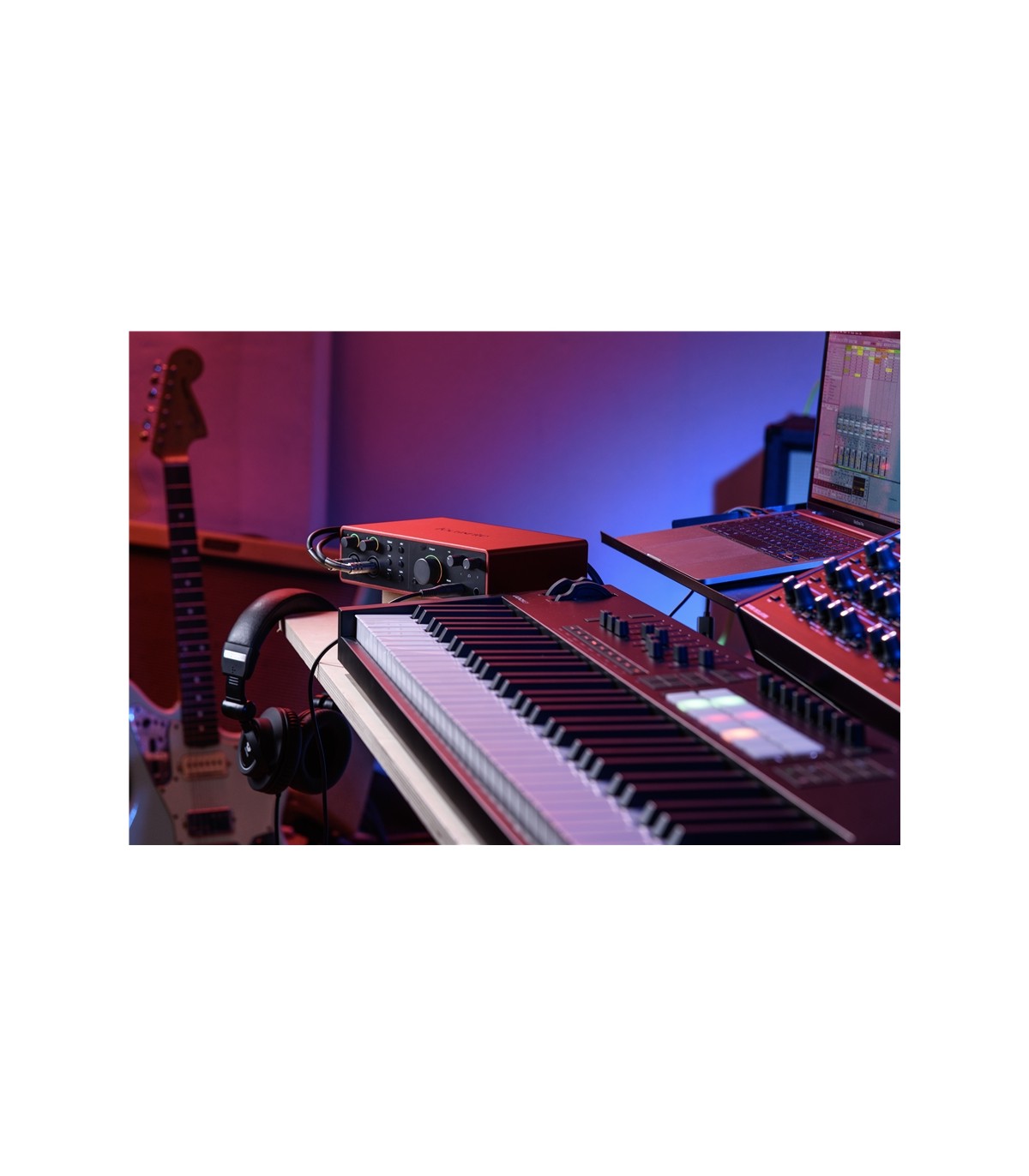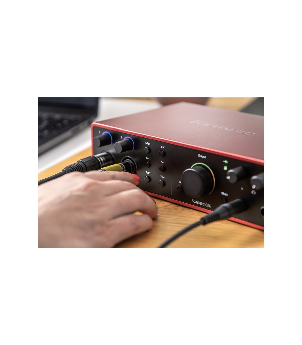 Focusrite Scarlett 16i16 di 4a generazione è l’interfaccia audio USB dotata degli stessi convertitori della serie RedNet, il top delle interfacce Focusrite. Dispone di 16 ingressi e 16 uscite, tra i quali troviamo 2 preamplificatori microfonici commutabili all'occorenza in line o Hi-Z e 4 jack di linea, connessioni ADAT, SPDIF e MIDI.