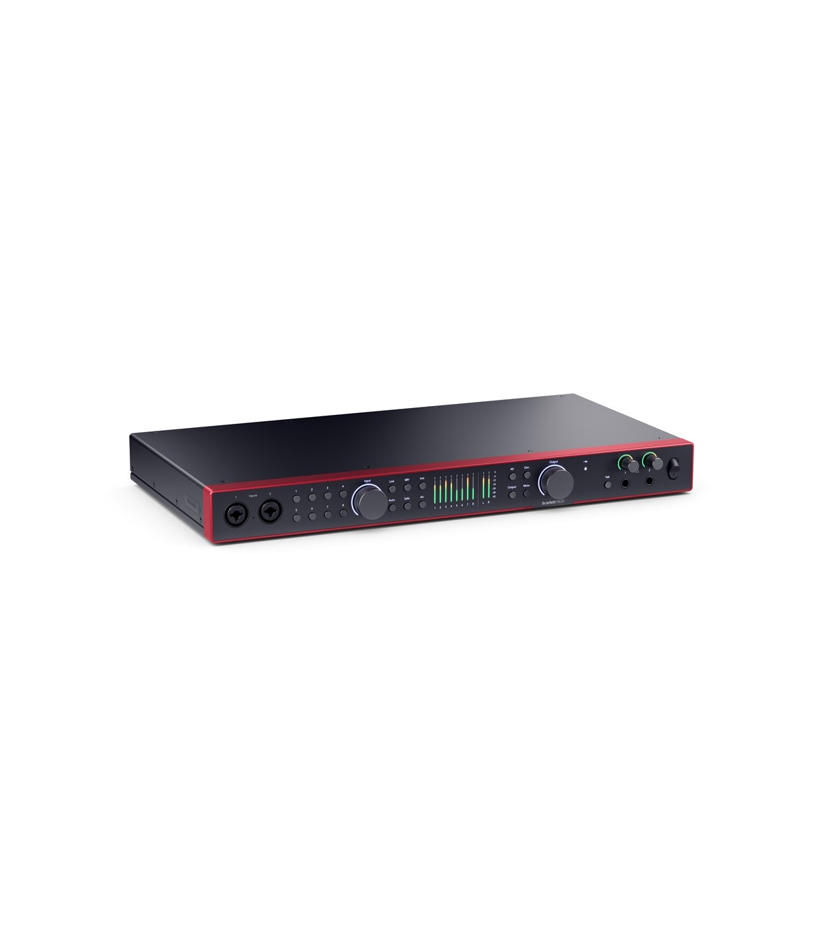 Focusrite Scarlett 18i20 4th Gen è un'interfaccia audio USB 2.0 (presa tipo C) ad un’unità rack da 19”, dotata di 8 ingressi combo con preamp (6 mic/line, 2 mic/line/instrument), 10 uscite line Jack TRS e 2 uscite cuffie. Conversione A/D-D/A a 24-bit/192kHz. In e out ADAT (2x SMUX), In e Out S/PDIF. Ingresso e uscita MIDI DIN 5 poli. Word Clock Out BNC. LoopBack In e Out.