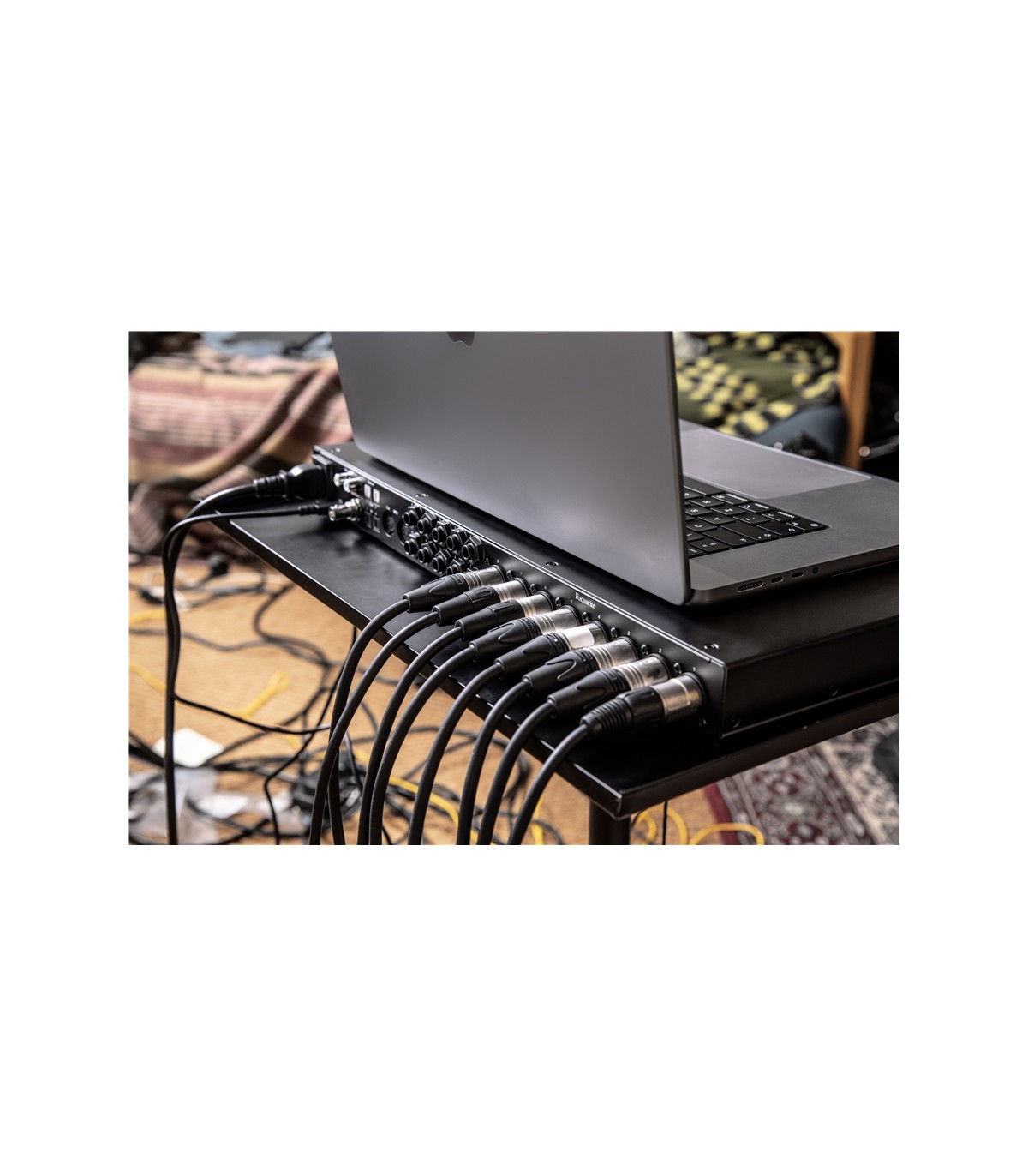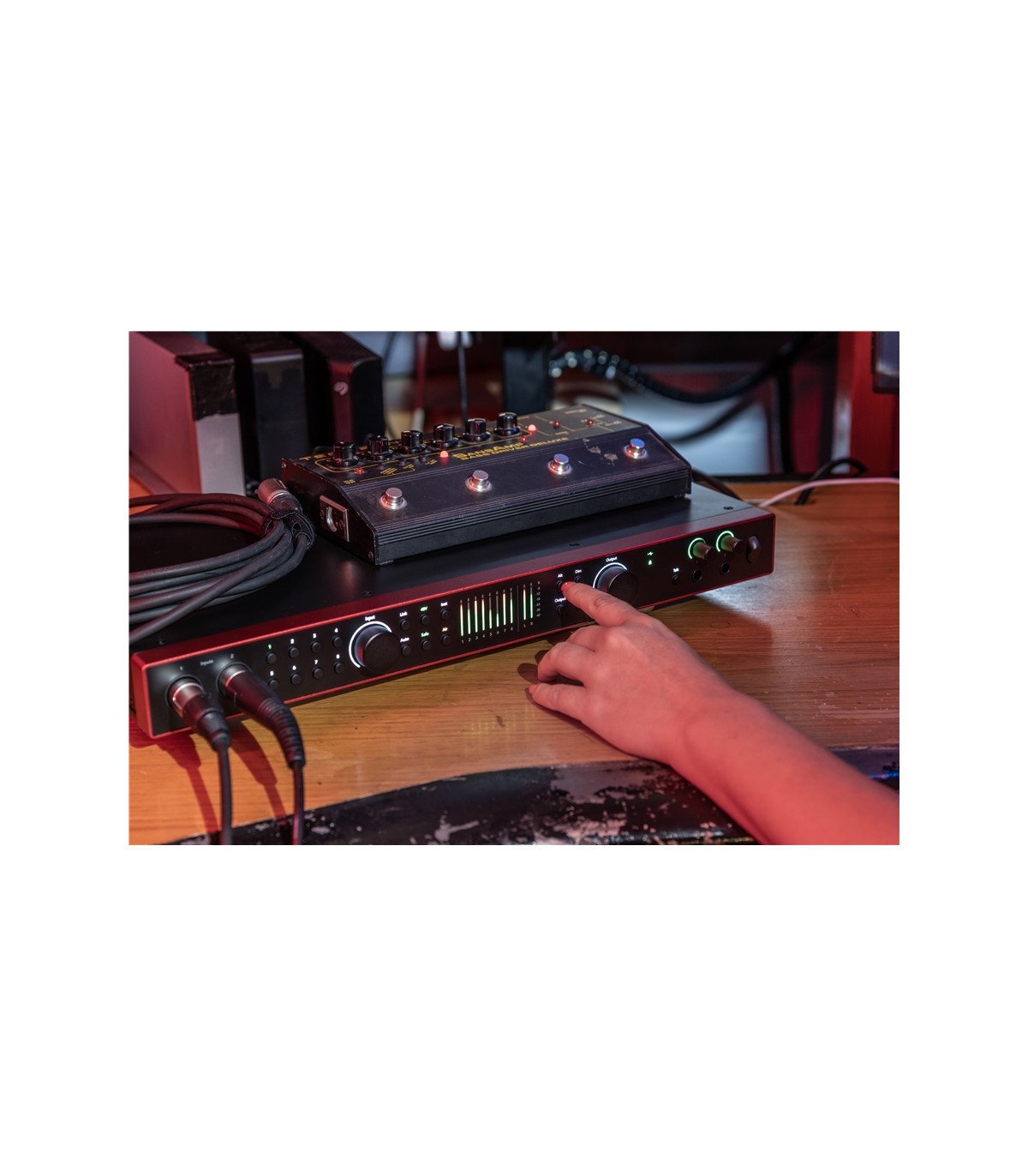 I preamplificatori di 4ª generazione offrono un guadagno importante di ben 69dB, consentendo di catturare le performance più dinamiche e con risultati di ottima qualità, con qualsiasi microfono. Due ingressi Hi-Z per strumenti e otto ingressi di linea offrono una connettività completa, per mantenere collegata la tua strumentazione esterna. Le uscite garantiscono una riproduzione precisa, priva di distorsione. I due nuovi amplificatori per cuffie progettati su misura sono capaci di gestire facilmente anche le cuffie ad alta impedenza.