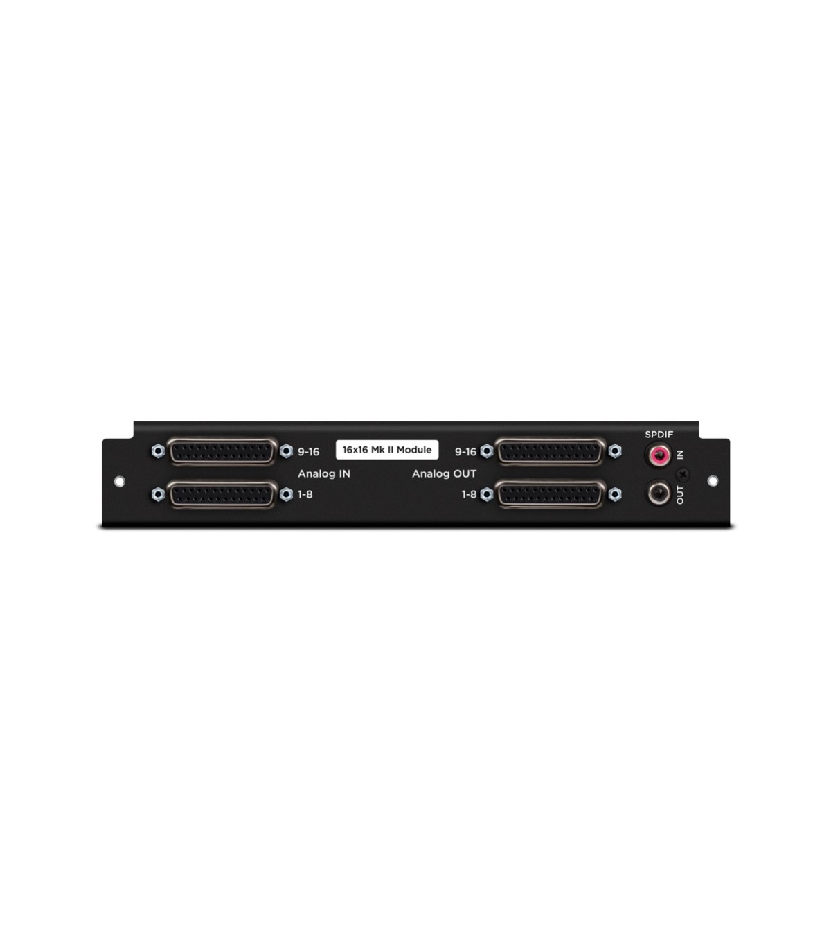 Modulo I/O dotato di 16 In e 16 Out analogici bilanciati con 4 connettori D- SUB 25, In e Out coassiali (2 canali SPDIF a 192 KHz).