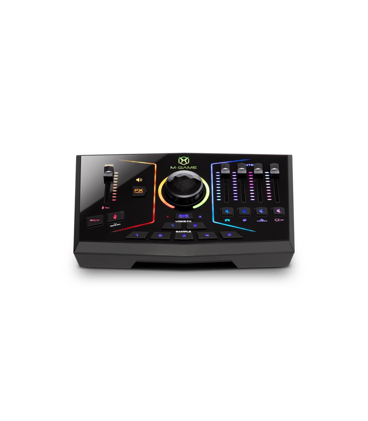 Interfaccia audio USB con risoluzione a 24 bit / 48 kHz, dotata di 2 porte USB (PC gaming + PC streaming), ingresso microfono in doppio formato XLR e jack TS da 1/8” con controllo del guadagno e phantom power 48V, ingresso Aux in formato jack TS da 1/8”, ingresso ottico per il collegamento audio digitale di Console, uscita Main in formato jack TS da 1/8”, uscita cuffie in formato jack TS da 1/8”, presa per footswitch assegnabile in formato jack TS da 1/4”, manopola multifunzione per la regolazione del volume delle uscite audio Main/cuffie e per il controllo dei parametri dell’effetto vocale attivo, mixer integrato con controlli di livello e pulsanti mute indipendenti per le sorgenti Game, Chat, Sampler, System / Aux In, Mic, pulsante Mute e pulsante #$%& (censura) per la tacitazione del microfono e l’attivazione di una clip audio o segnale acustico (selezionabile via software), 2 pulsanti per l’attivazione degli effetti vocali assegnabili via software, effetti per la modellazione della voce selezionabili e modificabili via software (include effetti di armonizzazione e pitch shift, distorsione, chorus, eco e riverbero), 5 pulsanti per l’attivazione di campioni sonori, pulsante Bank per l’accesso a fino 10 sound samples, possibilità di caricare, editare e registrare campioni audio via software, sorgente audio Chat selezionabile tra GAME USB o STREAM USB, sorgente audio Game selezionabile tra Console/Television (Optical) o GAME USB, STREAM USB, routing audio facilmente configurabile via software, illuminazione e colore dei controlli personalizzabile, compatibile PC e Mac. N.B. Verificare nel sito del costruttore i requisiti minimi di sistema e i sistemi operativi Mac e PC attualmente supportati.