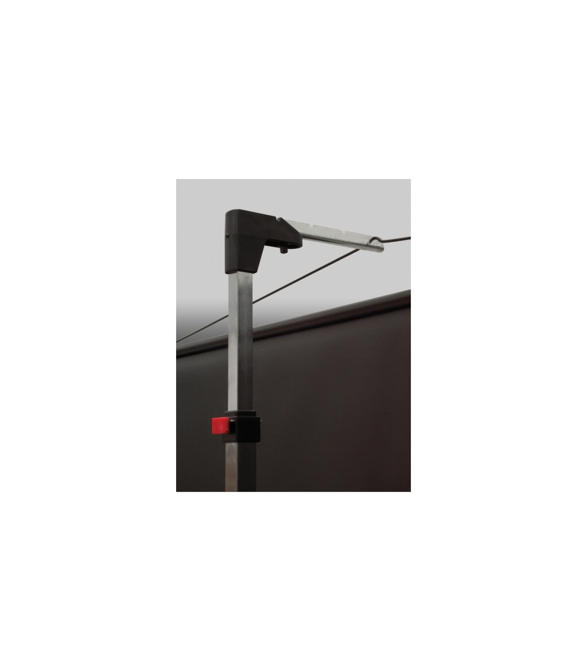 - Robusto treppiede in acciaio verniciato nero, rotazione a 360 per l'ottimale collocazione nel minor spazio disponibile, completo di piedini in moplen antisdrucciolo, tubo di sostegno a sezione quadrata, cromato, con fori a cm 70, 99, 105, 113, 133,5 e 144 per il posizionamento del telo all'altezza desiderata