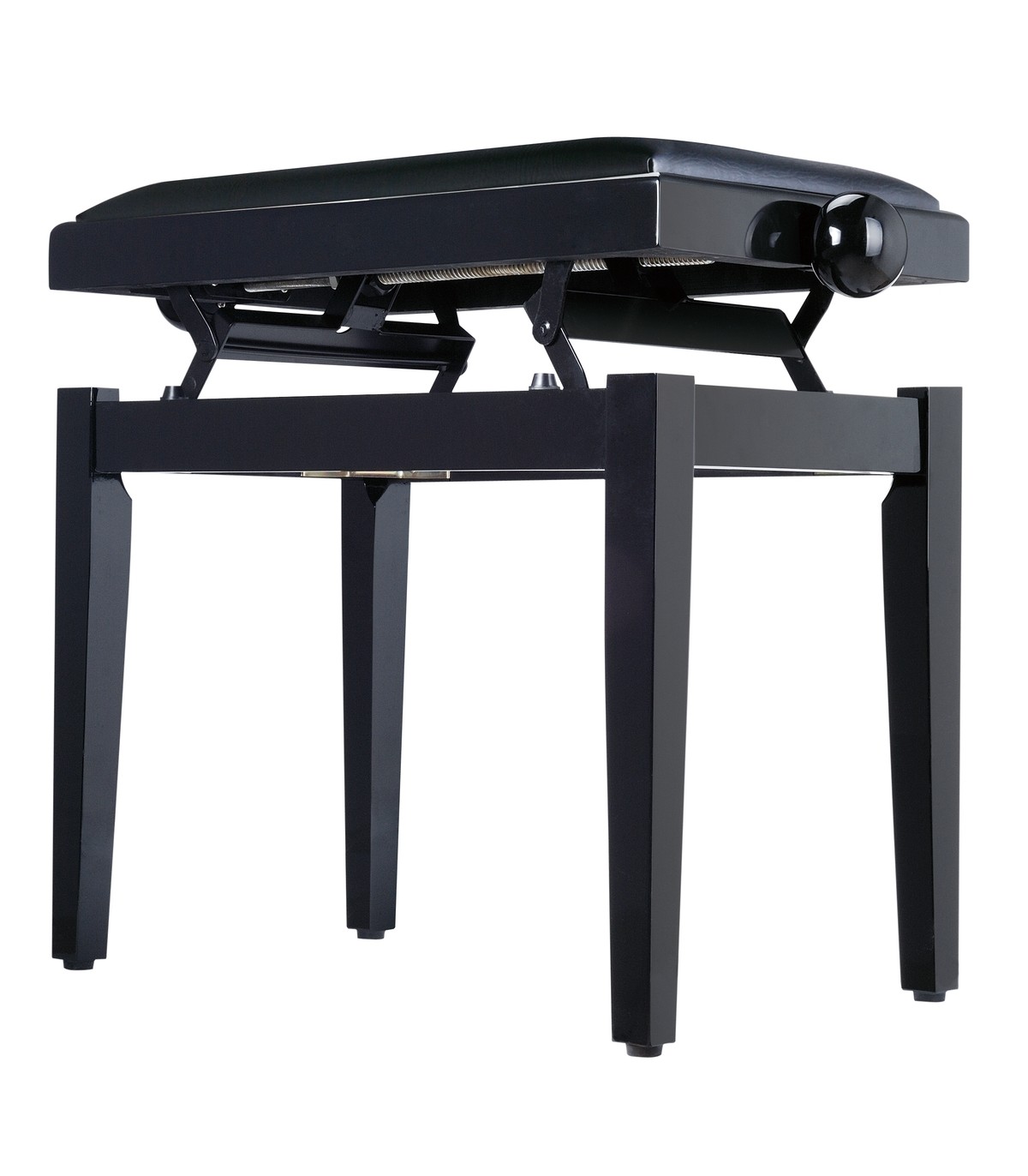 Panchetta per pianoforte con seduta in sky nero. Altezza regolabile e finitura lucida, look classico ed elegante.